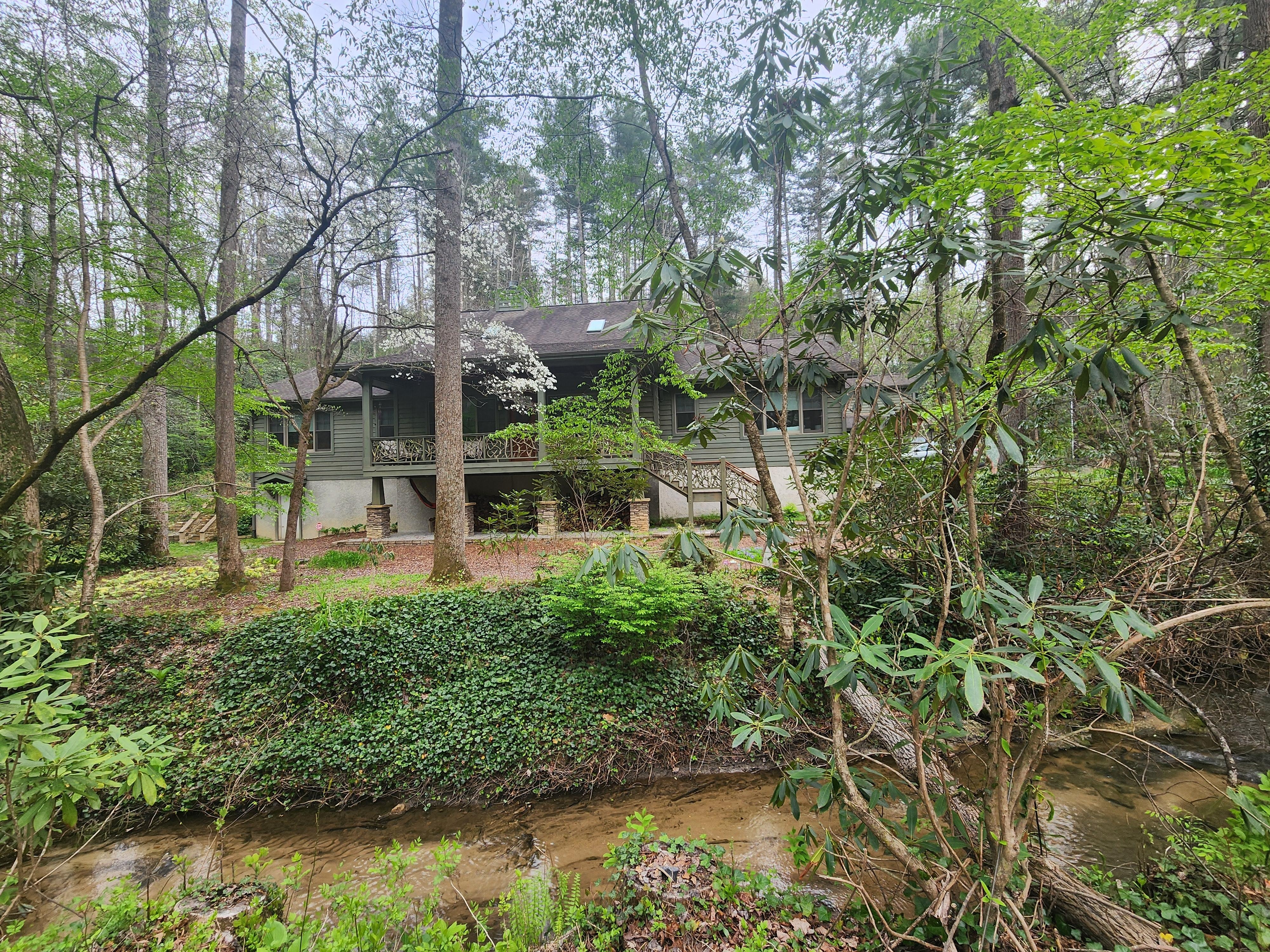 Escape with family and friends at this beautiful, newly furnished home on a unique & special setting in the NC mountains with a stream, bridges, and plenty of porch & deck space. Feel secluded among beautiful trees and gardens just minutes to downtown Hendersonville & Flat Rock & a stones throw from amazing hiking, biking, golf, & other towns. Fully conditioned garage includes game room & office space.