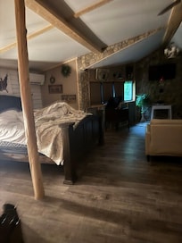 the property was lovely clean but a bit neglected and it seemed that most of the interior improvements were merely cosmetic wifi worked wellI loved the king size bed but was not happy that it only had a fitted sheet and a thin quilt i found no blankets or sheets and actually bought a set of sheets to use Plenty of towels in the bathroom but kitchen was poorly stocked the pots and pans are terrible and need replacedit would be helpful to have some sort of directions on have to use tv there were several remotes and we could not get the kitchen tv to workwe did enjoy the outside space and feeding the catfish in the pond but again need some attention Overall it is a nice location and very private