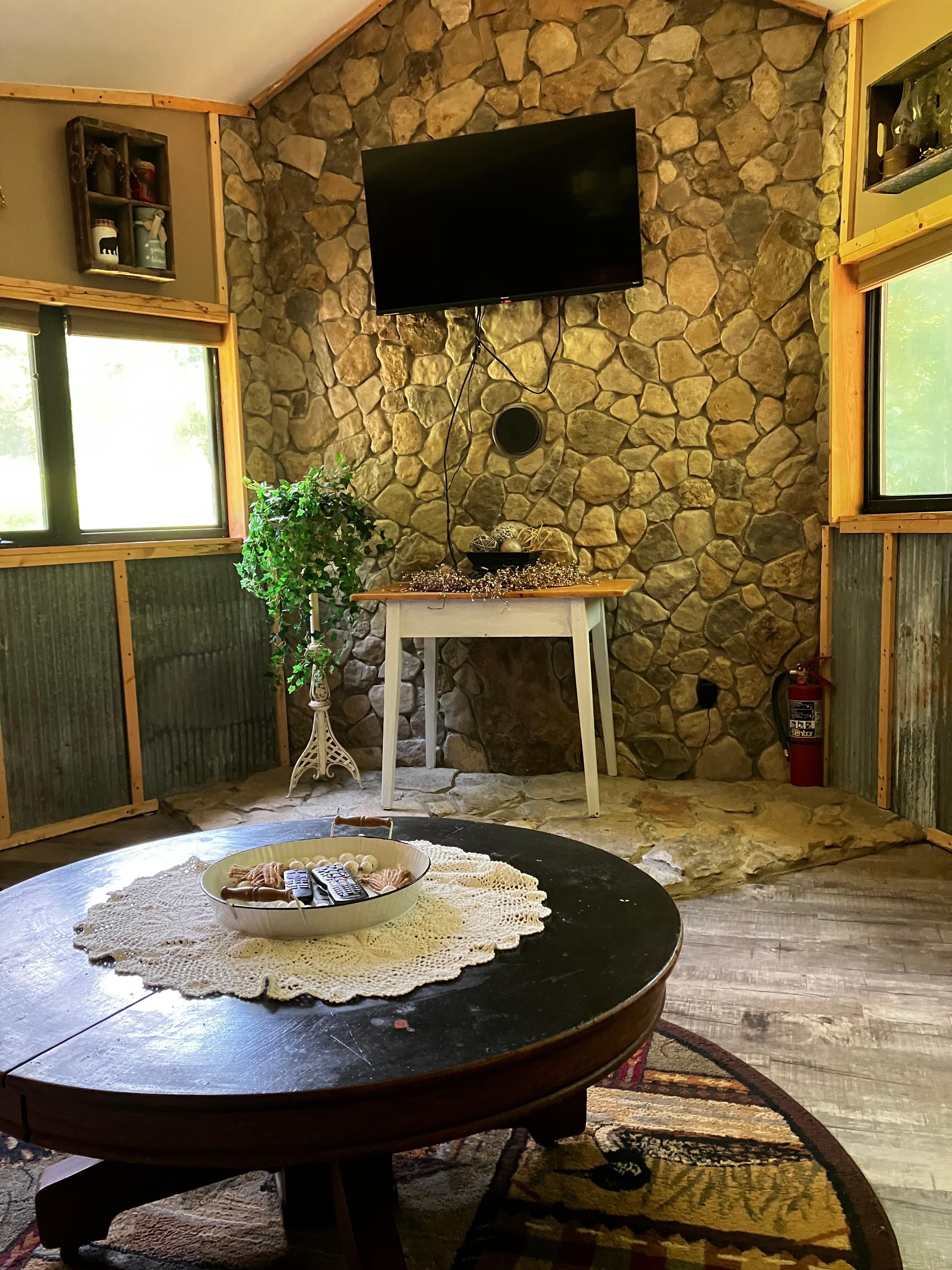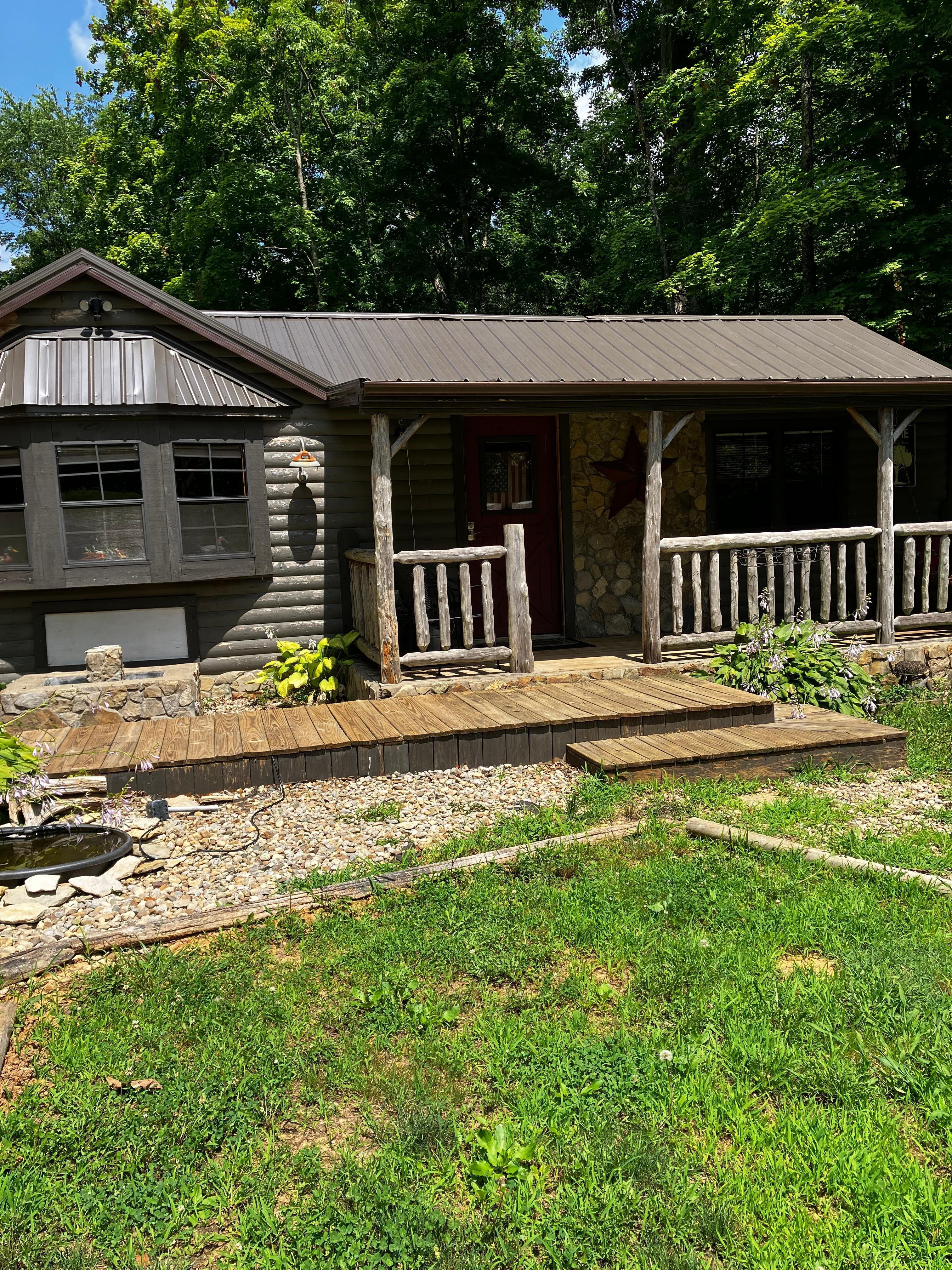 Take it easy at this unique and tranquil getaway. A little piece of heaven! Rustic cabin on 3 acres with a pond! Custom wood and stone work throughout. Stone hearth fireplace. 2 Beds 2 full bathrooms. Incredible front porch views. Stocked pond includes an overlooking tiki bar along with decking and a swing. Stone pit can be used for cooking or pizza oven. Refrigerator, cookstove and laundry set included.