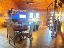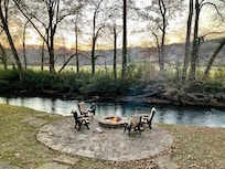 This cabin is exactly as pictured and had everything we wanted. The outdoor fire pit by the river was the highlight of our trip. Firewood was provided. The cabin was very clean, well taken care of and very well stocked with small appliances (Keurig & drip coffee pots), a grill, dishes, pots/pans, utensils, games & books. You can easily tell how detail oriented the owner is by her thoughtfulness - extension cords are run to each side of beds to provide plugs, separate washcloths provided for makeup removal, etc. The beds were very comfortable and sheets & towels very soft. I was amazed at how quickly responsive & cordial the owner was with all inquiries. The cabin is conveniently located between two small towns - Ellijay and Blue Ridge where there are several wineries and orchards. I would absolutely recommend!