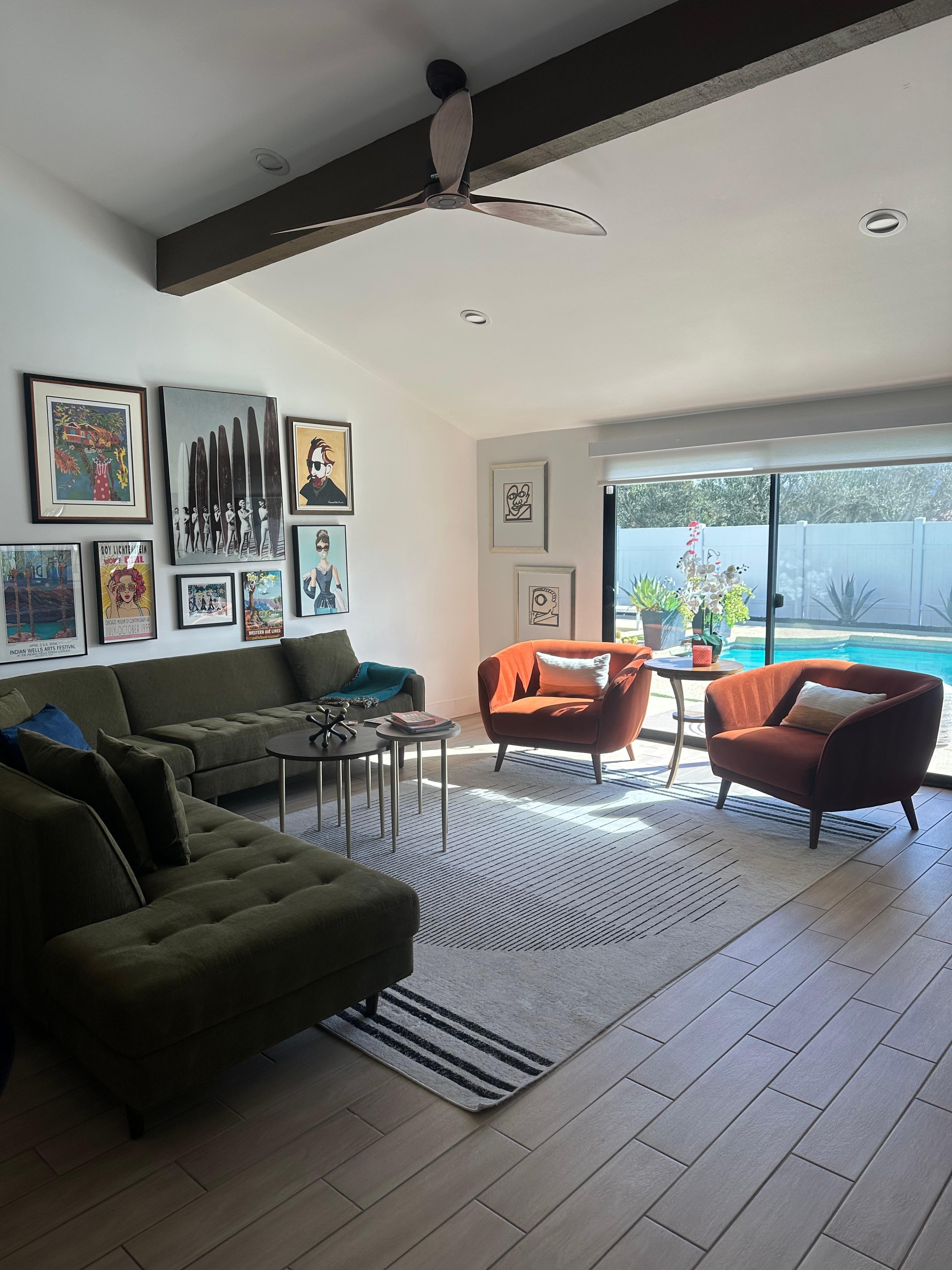 Your very own resort living in this spacious Mid-Century Modern 4 BR, 3 Bath with Rat Pack Feel. Great private outdoor living. swimming, sunning, ping pong, cooking, eating, cocktailing and entertaining from sun up and into the night.