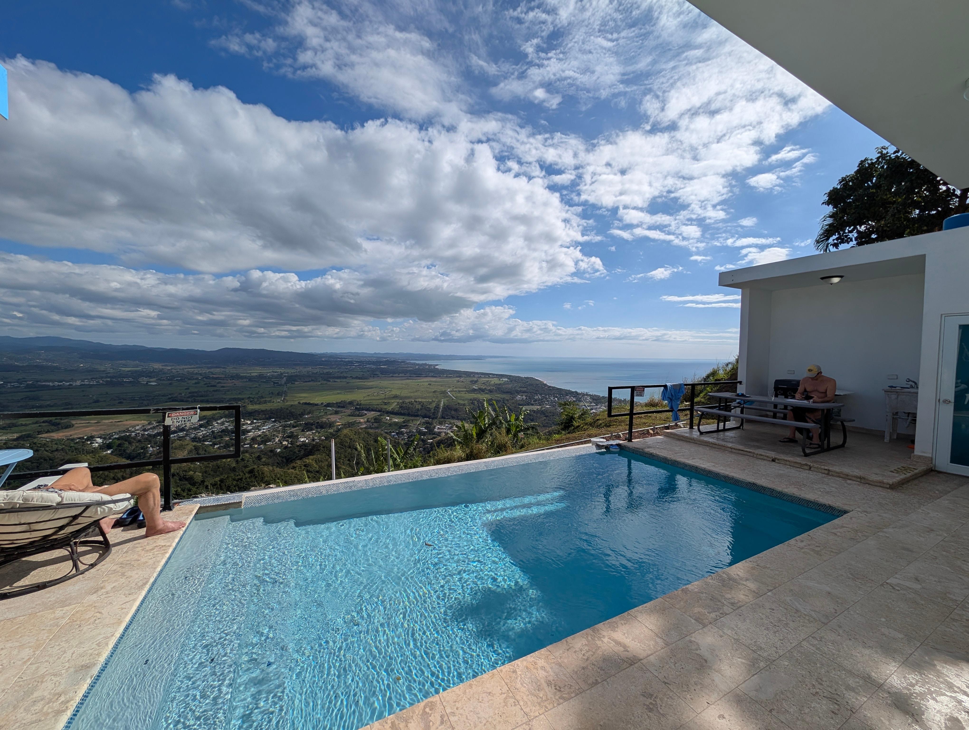 Full size House in Rincón with private 10x 20 swimming pool overlooking the ocean and nine(9) towns in Puerto Rico. Top of the mountains in Rincon. In the gastronomic and Chinchorreo route "Sabor del Campo". 10 minutes from HWY #2, Balneario of Anasco, 20 minutes to Rincon plaza and beaches. 20 Minutes to Mayaguez Airport and 30 to Aguadilla (BQN) airport. *** Need more Space? Paradiso Apartment is available https://www.vrbo.com/3537287?unitId=4110433