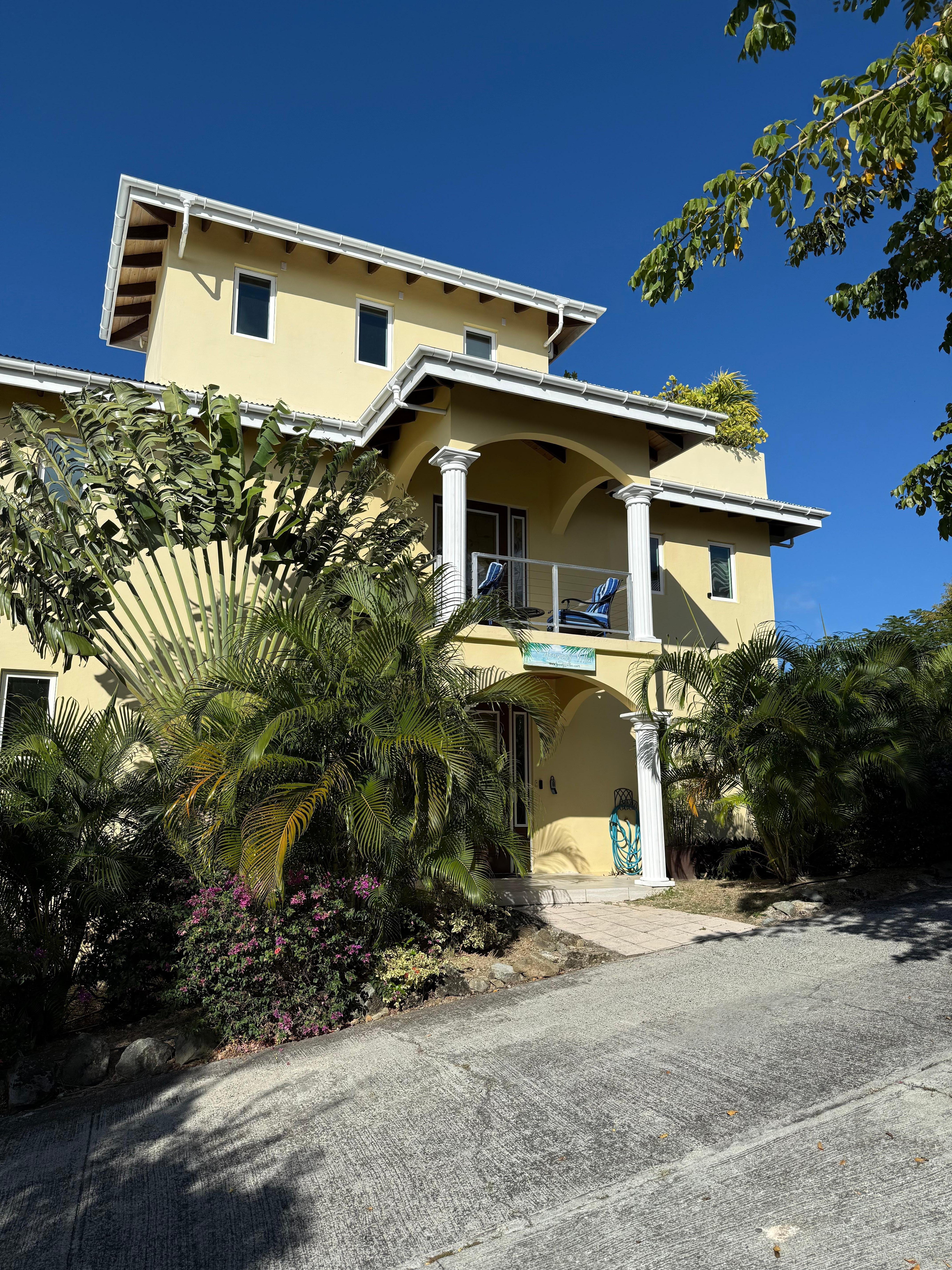 This is a brand new home conveniently located close to Cruz Bay. Sunset Villa by Heavenly Villas, LLC is a private, stand-alone (no shared walls) 2 level concrete villa with rooftop terrace and 3 master bedrooms (all king beds with private balconies), located on the west side of St. John in Cruz Bay. We have wide, sweeping views of the ocean to the South and the entire West side of the island and Pillsbury Sound. The views are breathtaking all day and night and more amazing in person than what a picture can capture! Convenient location with an incredible kitchen and game room complete with foosball table and double sleeper sofa (not a futon). Community pool within walking distance. Recent upgrades include solar and Helix mattresses with plush bedding.