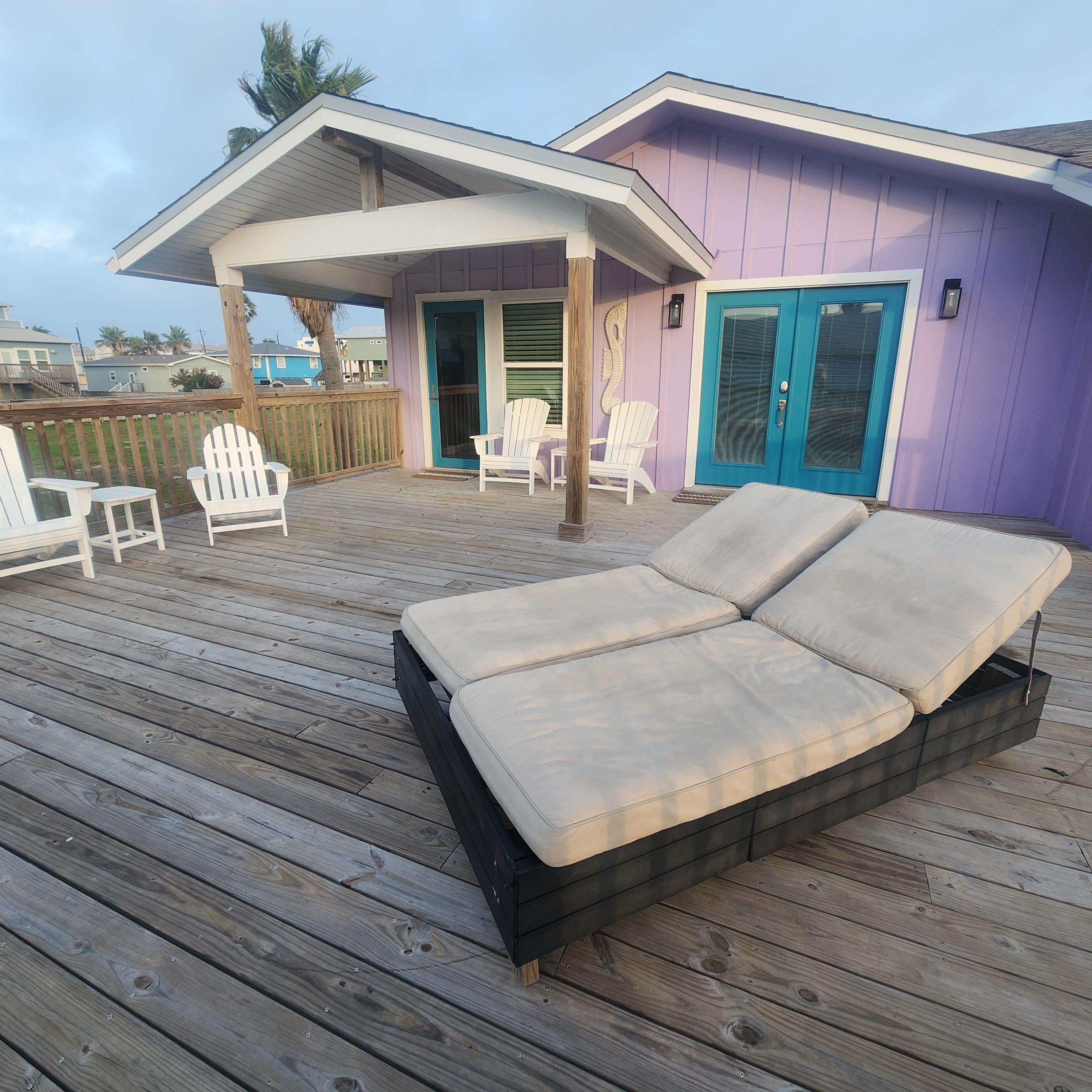 Heading upstairs, you'll enter a beautiful and spacious dining/kitchen area. The kitchen is well stocked with everything you'll need to prep, cook, serve, and dine! The living space is open and offers plenty of seating for your friends and family. The balcony and upper deck are huge and have great outdoor space for grilling and chilling!