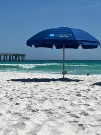 This beautiful Beach colony west condo is ready for your family beach vacation. The views of the Navarre pier, pool, and gulf are incredible! This 3 bed, 3 bath, unit provides flexibility for your friends and family. The kitchen is updated with quartz countertops, subway tile backsplash, large undermount sink, and new stainless appliances. The living room has a 100" TV, as well as TVs in all the bedrooms with cable or streaming. The master has an i10 sleep number bed, and walk in closet. Beach colony is famous for its private entryways, circular terraces, and master bath spas. Covered parking, the largest pool on Navarre beach, tennis-pickle ball courts, community room, charcoal outdoor grills, and fitness room all make this condo the perfect choice for your family getaway. Beach service includes an umbrella and two beach chairs, contact the attendant when you go to the beach. Enjoy!