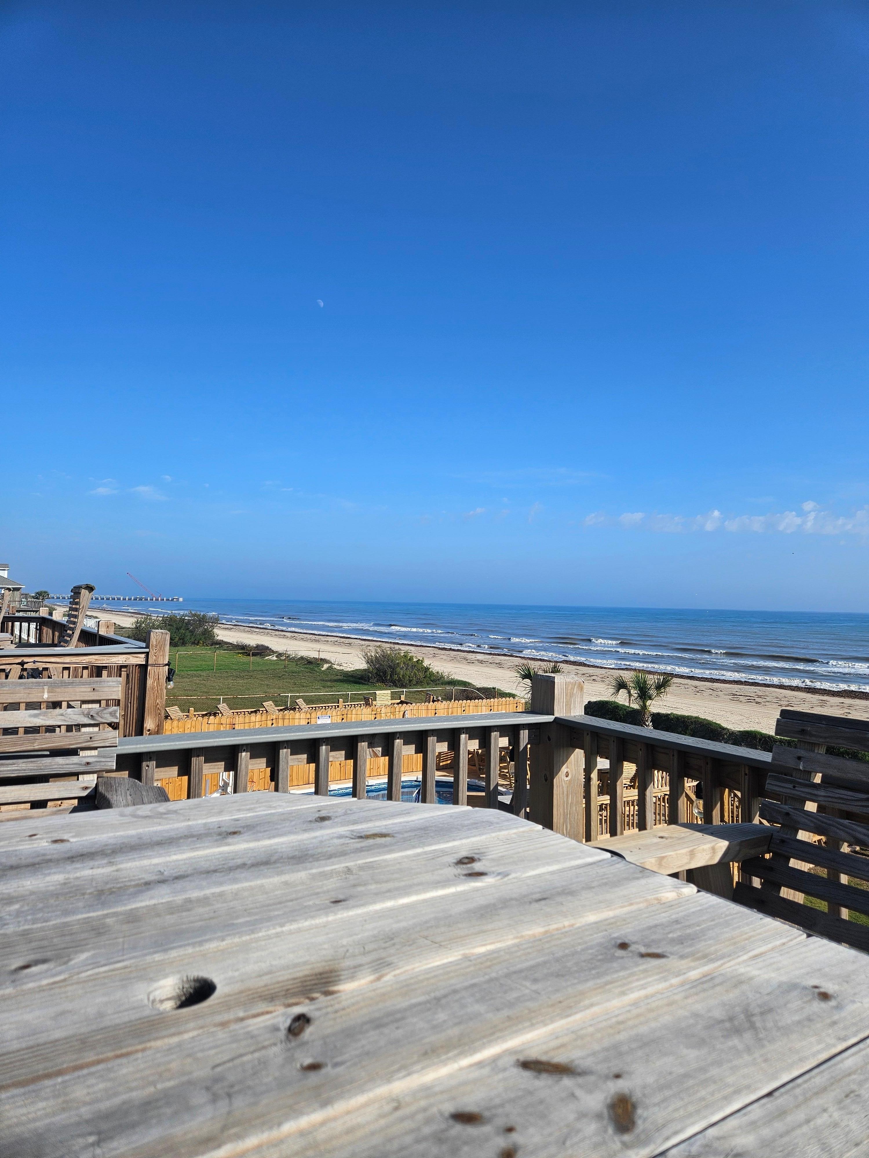 This was a phenomenal property for our KiKi and PawPaw annual vacay, eight adults and eight children ages 3-10! The home is beautiful with multiple decks overlooking the yard and pool plus fabulous views of the ocean! The pool was on the edge of the beach overlooking the ocean, the first we've seen in Galveston, as most are under the home! The playground and swings were especially great for our little ones! Having the beach package was also nice so we didn't have to bring tents, chairs and toys with us! Of course, the golf cart was great fun on the beach!The home was perfect for us with the three floors, multiple TV's, and two game tables inside. We really enjoyed the large covered deck off the kitchen for outdoor grilling, hot tubbing, dining and especially being able to watch the children play and swim! Also perfect for early morning coffee while watching the sunrise and lapping waves!The ground floor is fabulous for entertaining with a second hot tub, second grill, putting green, ping pong table. corn hole set, game tables, ladder golf, and a larger outdoor TV!Thank you, Tyler, for sharing your lovely home with our family!