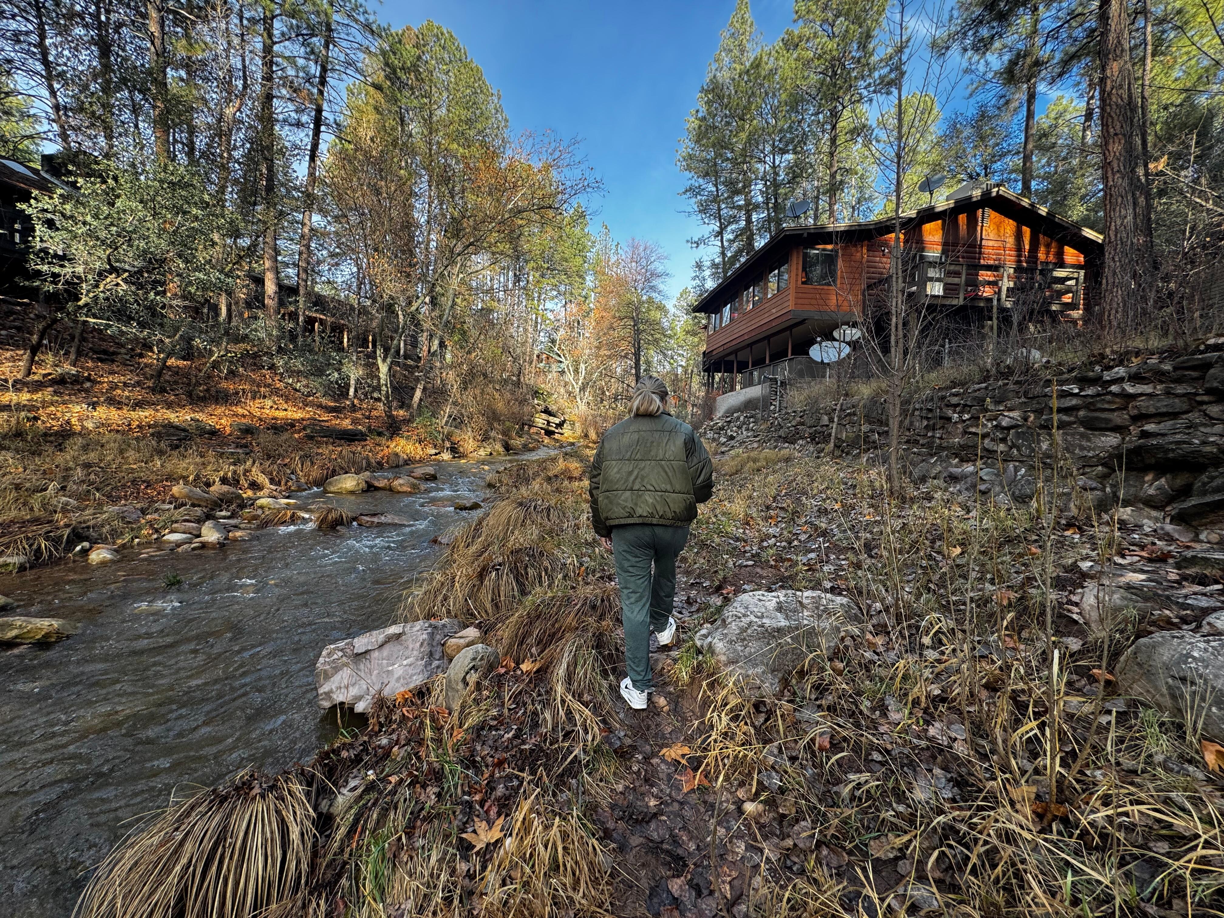 Enjoy this enchanting, cozy luxurious cabin just feet from the tranquil creek with private access. Great for families, couples and individuals to enjoy a rejuvenating wonderful experience. Nestled in a unique location with breathtaking scenery and wall to wall panoramic windows making it very special. Watch the beautiful birds right from the deck and enjoy creek side fishing. Local horseback riding, hiking and lakes . Enjoy the spa, fun games, activities and a playroom for children. This is my personal home with fine quality furnishings and decor, giving you a memorable experience including hardwood furniture, Antiques, unique wall hanging, bronze sculptures with a very relaxed combination of being with nature in the old West.