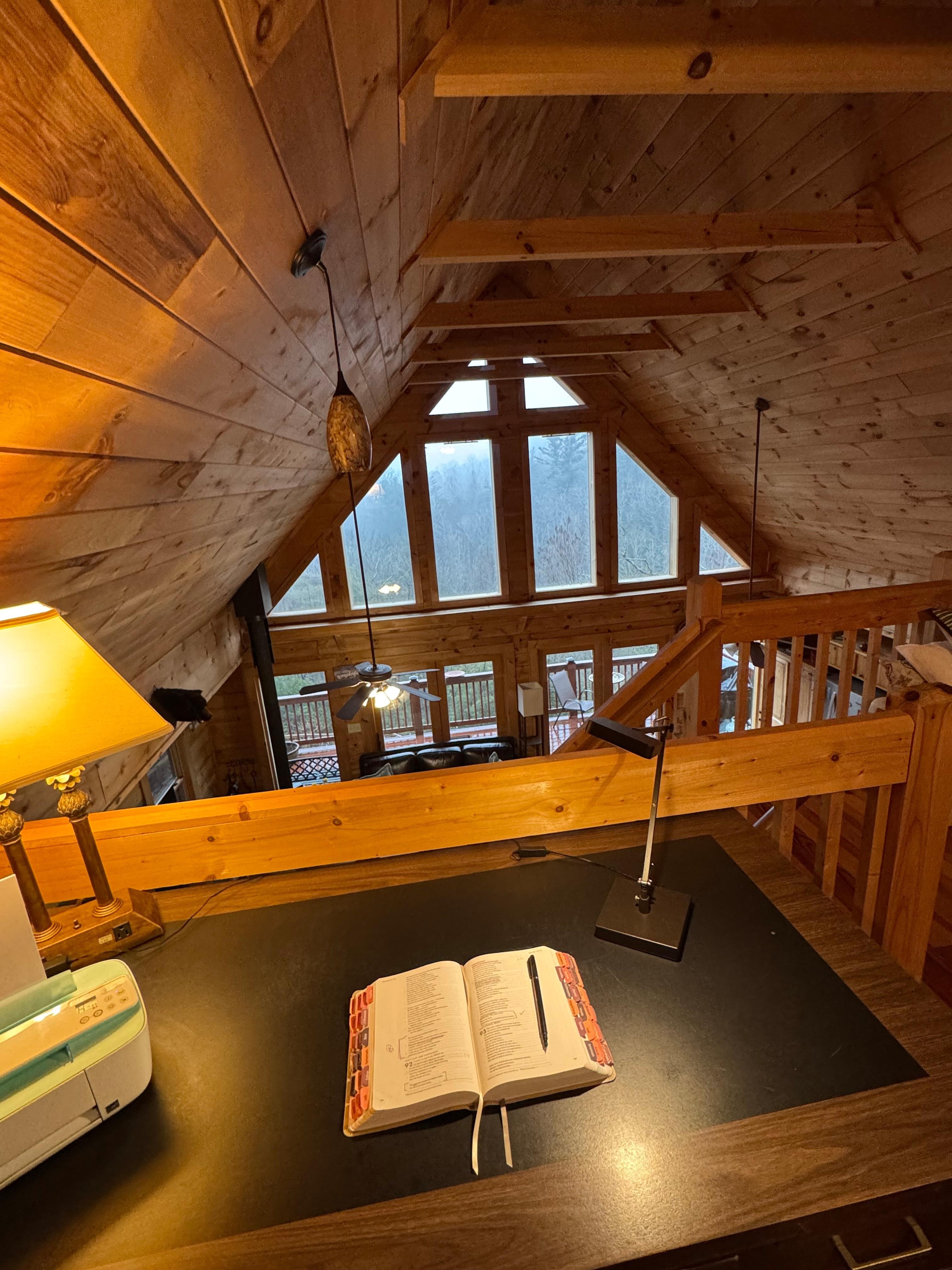Upon entering this three-story charmer, you will immediately notice a spacious open floor plan with high cathedral ceilings, floor-to-ceiling windows, lots of wood and light, and black bear decor throughout. Make yourself at home as you spread out comfortably in the welcoming living area, furnished with guests' comfort in mind. Stream a favorite movie or series on the smart TV equipped with streaming and cable services while the wood-burning stove keeps you nice and toasty. When mealtime comes, you will enjoy a well-appointed kitchen with the essentials to prepare the most delicious homemade meals and treats for the crew. This area also boasts two main bedrooms with en suite bathrooms. You will find multiple furnished decks with seating options, a gas grill, and impressive tree-lined views. Stargaze on a clear, dark night using the telescope. Black bears are regular visitors - you may catch a glimpse of them from the decks! The lower level is all about indoor entertainment. Discover a glass-enclosed sauna, gym equipment (dumbbells, a kettlebell, a treadmill, and an elliptical), numerous books and board games, and a reading corner. The upper level houses a private loft with a sleeping area, and writer's desk.