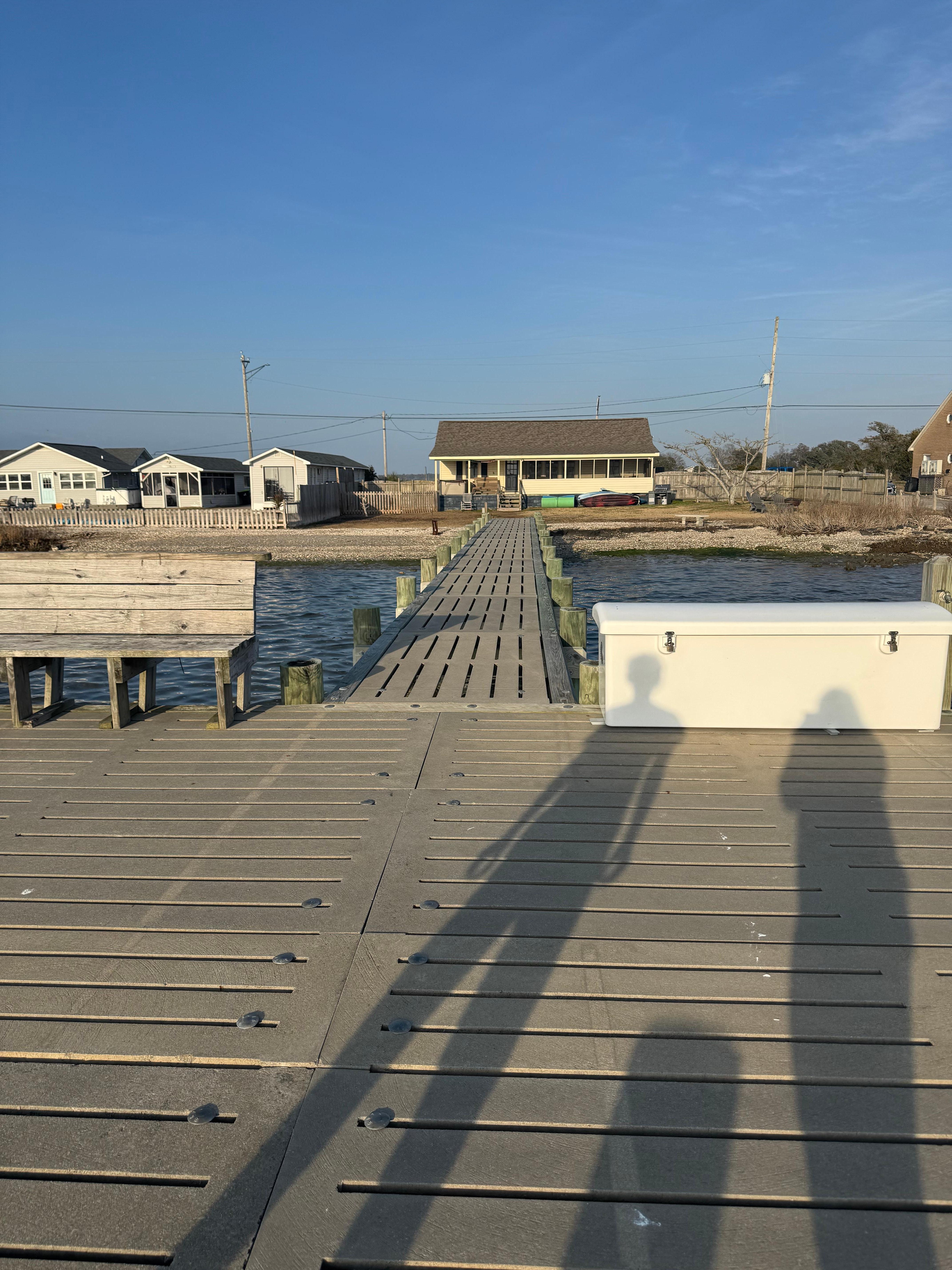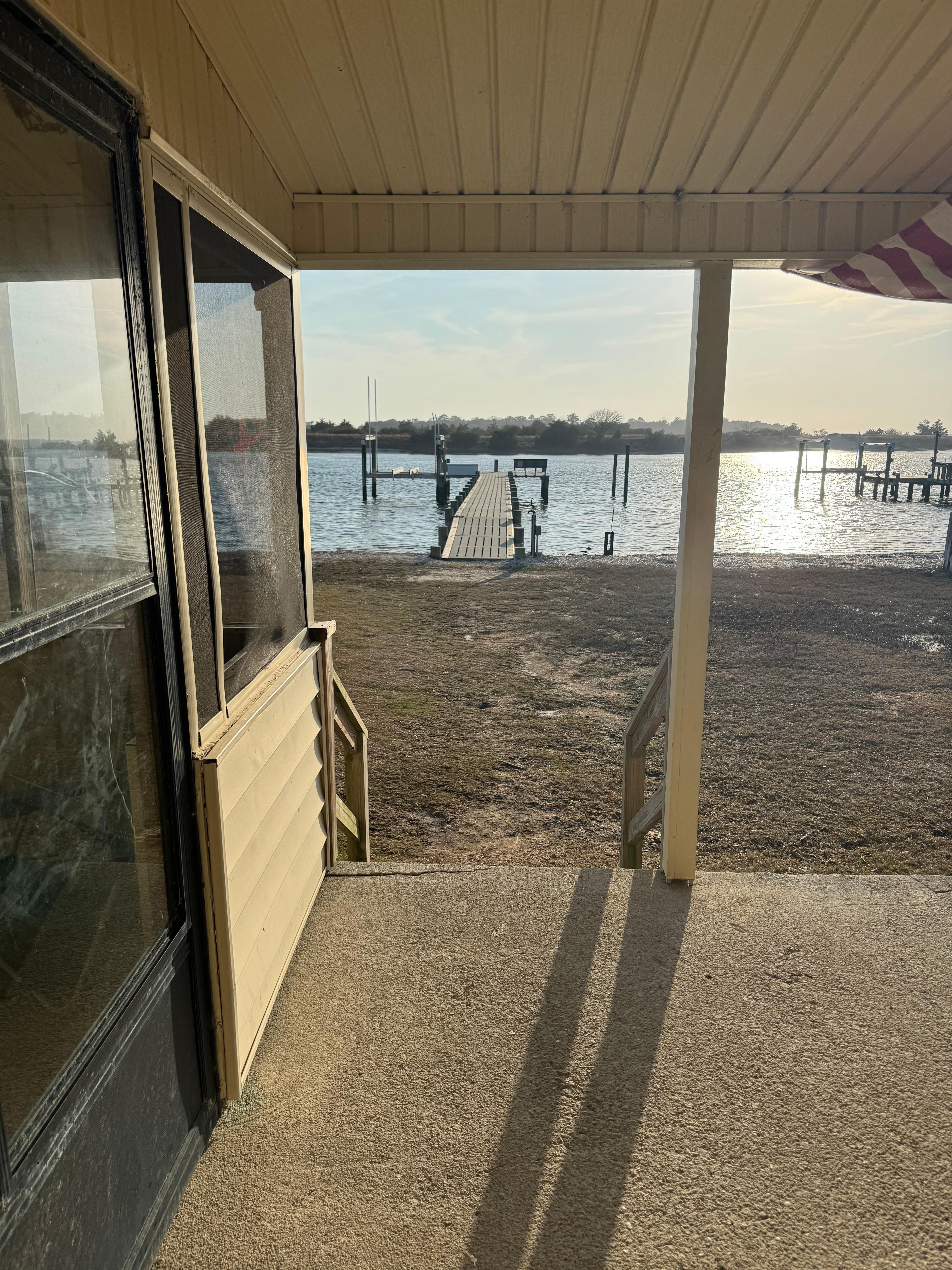 Private dock with a private Hot Tub, swim mat, fire pit, XL covered porch, large private fenced yard. BRING YOUR BOAT or rent our kayaks and visit Sharks tooth island or spend the day at a sandbar! You will never be bored. We provide a swim mat for endless fun on the water. Unbelievable sunsets over the Intracoastal waterway from the hottub or dock. Close to everything, 3 miles to beaches & hiking, 2 miles to walmart, 13 miles to Camp Lejeune,15 miles to Aquarium.