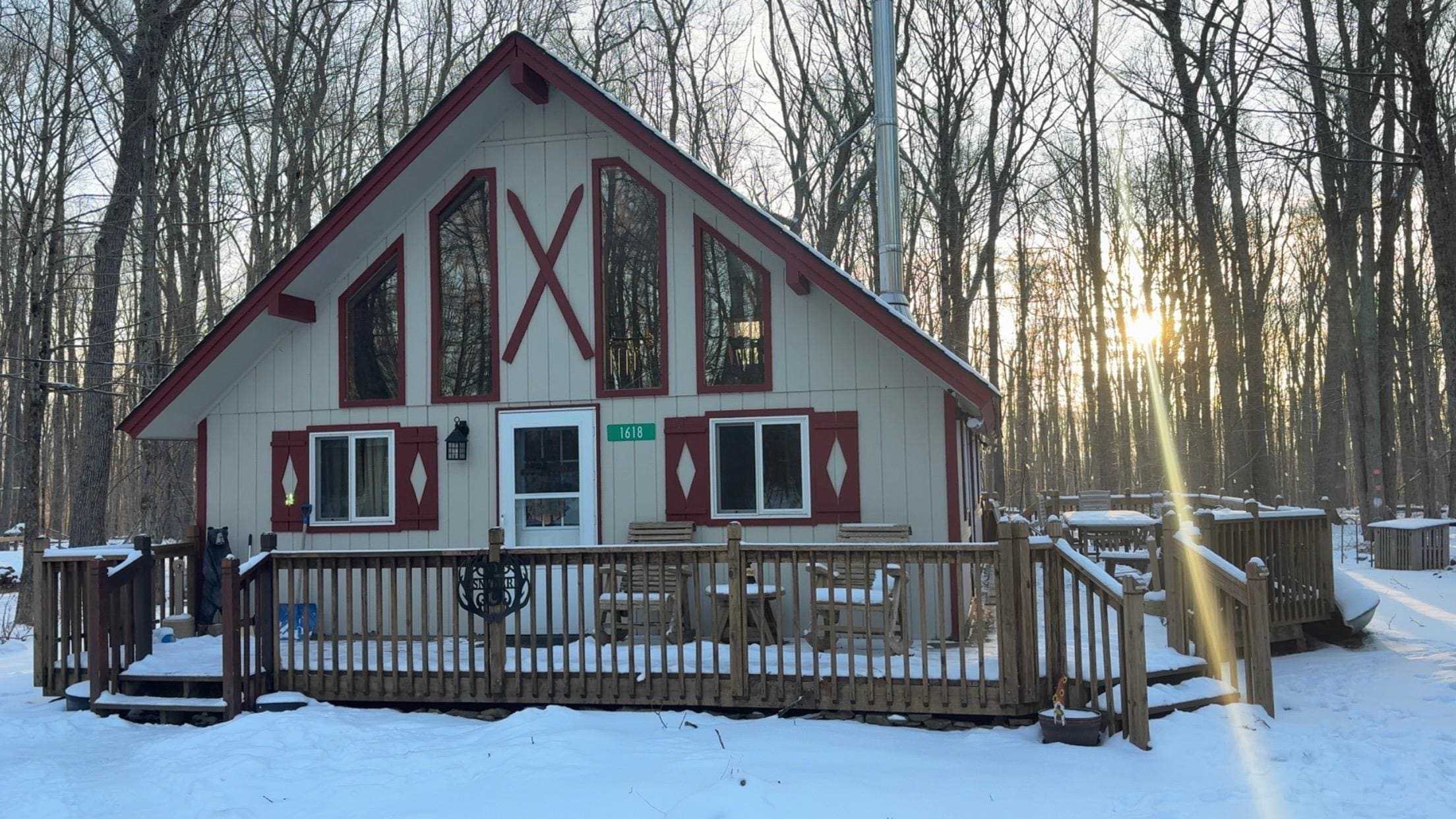私たちのシャレーは、銅の調理器具と花崗岩のカウンタートップ、薪ストーブ、HuluとNetflixへの無料アクセス付きのフラットスクリーンテレビ、そしてあなたの便利のための無料WiFiを備えた新しい、品揃え豊富なキッチンを備えています。 インテリア全体が塗装され更新されており、新しいランドリーセンターがあります。 あなたはマスターベッドルームの居心地の良いプライバシーを愛するでしょう、そして老いも若きも子供はレトロなビデオゲームシステムを含むゲームで仕入れられている眠っているロフト2階を愛するでしょう。 リビングエリアには、豪華な革張りのソ ファと、アーチ型の美しいパイン張りの天井に埋め込みスポットライトと天窓があります。 屋外には、開発中の数少ない裏庭のうちの1つがあります。 チーク材の椅子とテーブル、チャコールグリル、そしてAdirondackの椅子が置かれたファイアーピットがある、大きなラップアラウンドデッキがあります。