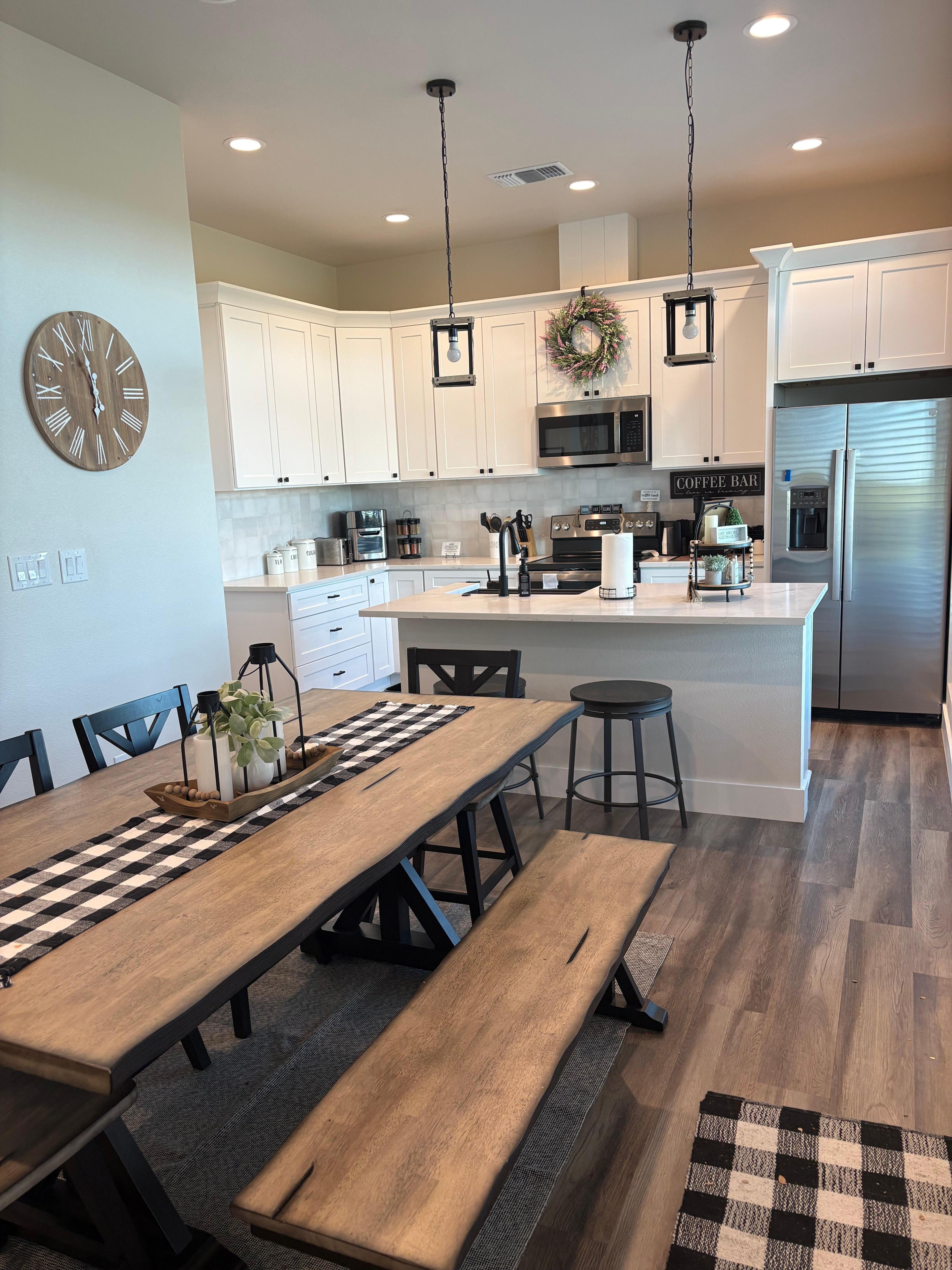 リバーフロントにあるキッチンとパティオを備えたバケーションホーム