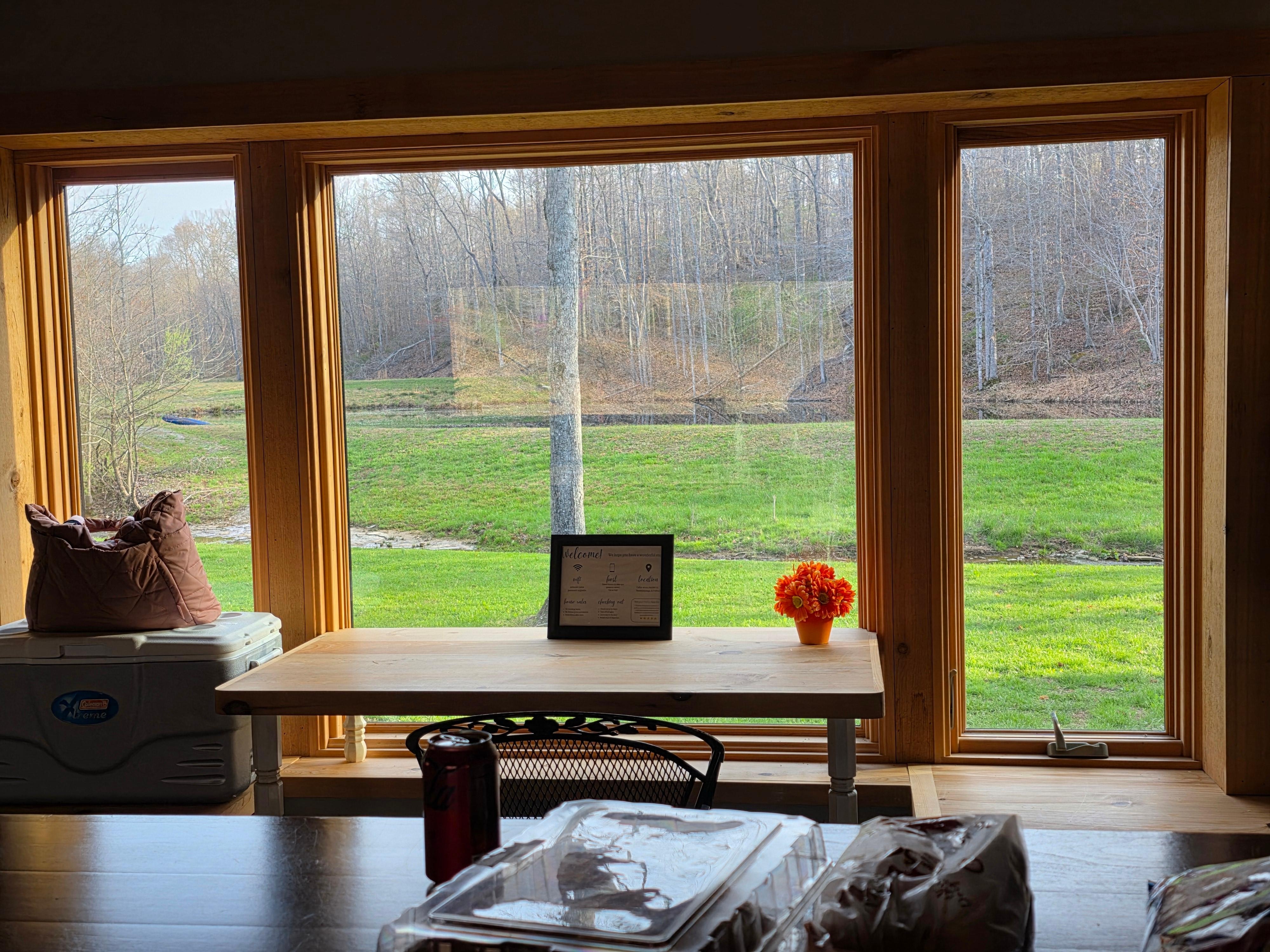 Surrounded by three ponds and a creek, this cabin in nestled in the woods and a beautiful place for a quiet get-a-way. You can enjoy fishing off the deck or around the pond. There's a shelter with an outdoor kitchen and a bonfire area. Open concept kitchen and living space with a wood burning stove, spa-like bathroom and one bedroom with a king size bed. Up to two small dogs welcomed.
