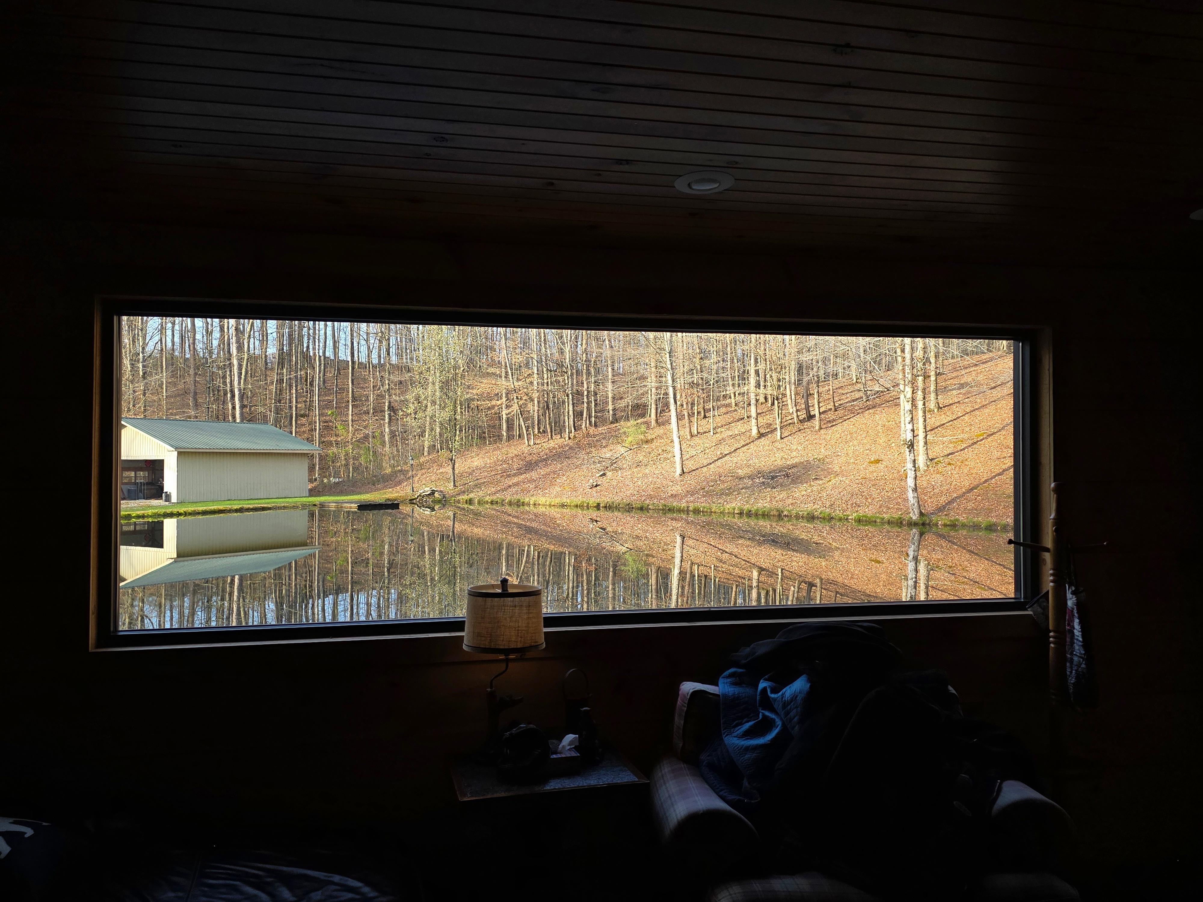 Beautiful cabin nestled in the woods surrounded by water