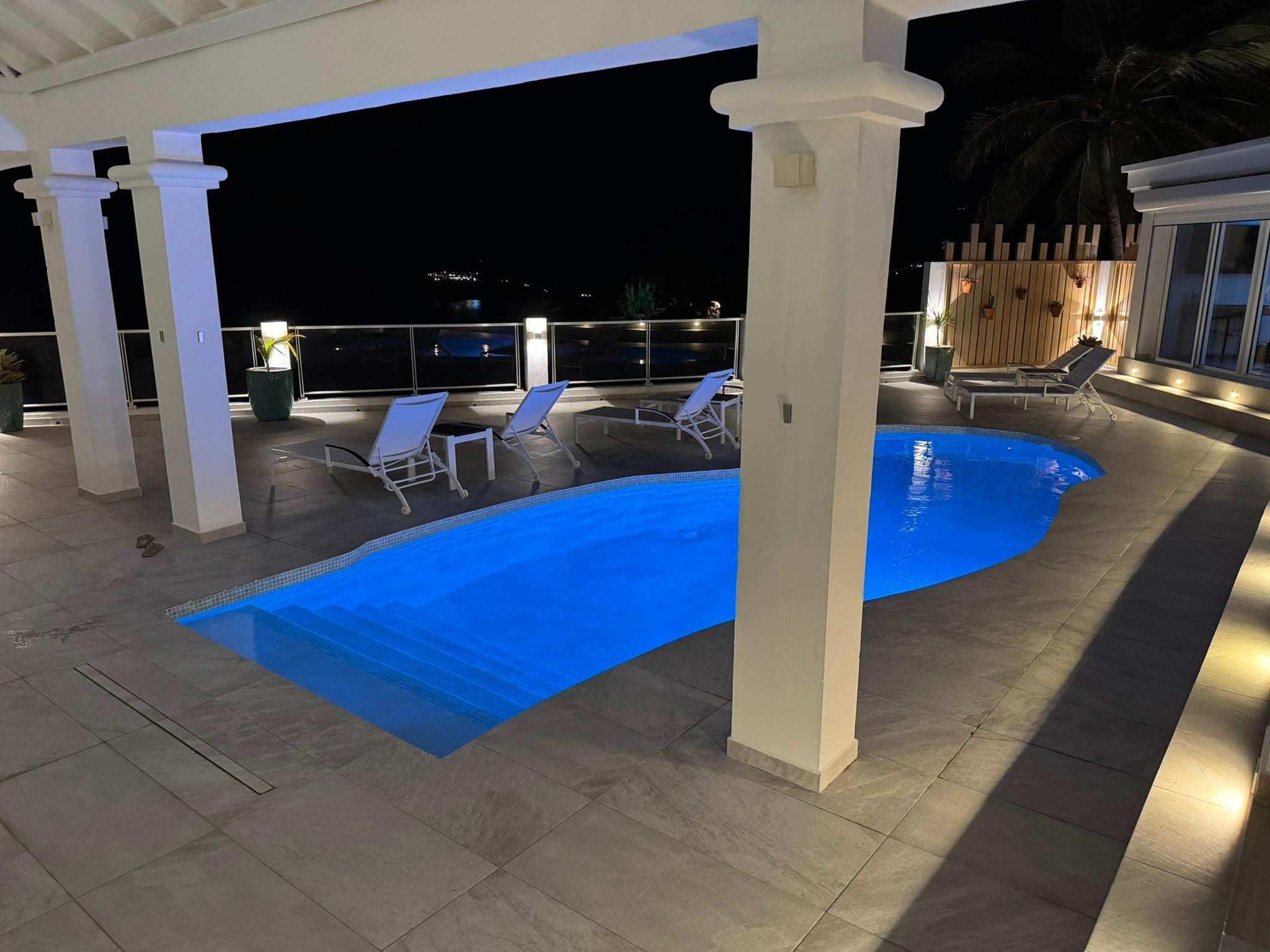 Villa Sophia is meticulously designed to create an atmosphere of luxury and tranquility while bringing the outside in and the inside out, allowing you to fully immerse yourself in the best our tropical environment has to offer. The main pool deck level is designed in the traditional pod style that St. Maarten is known for. The living and dining areas are located on the pool deck.