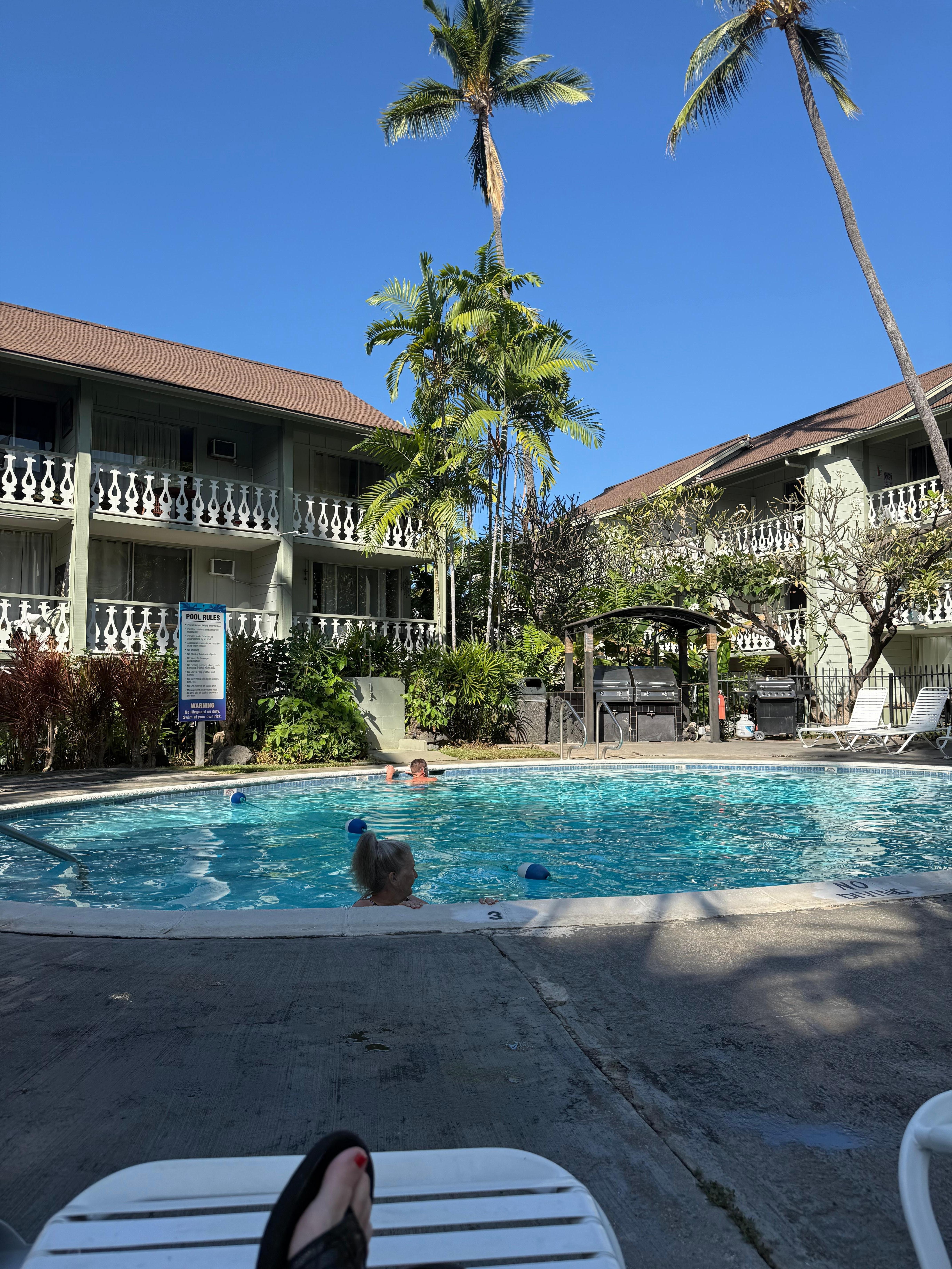 Kona Islander Inn complex features an open air lobby/reception area, pool, hot tub, two BBQ’s, and coin operated laundry facilities. This prime location places you close to restaurants, beaches, the Kona pier, volleyball courts, and has direct access to Ali’i Drive.