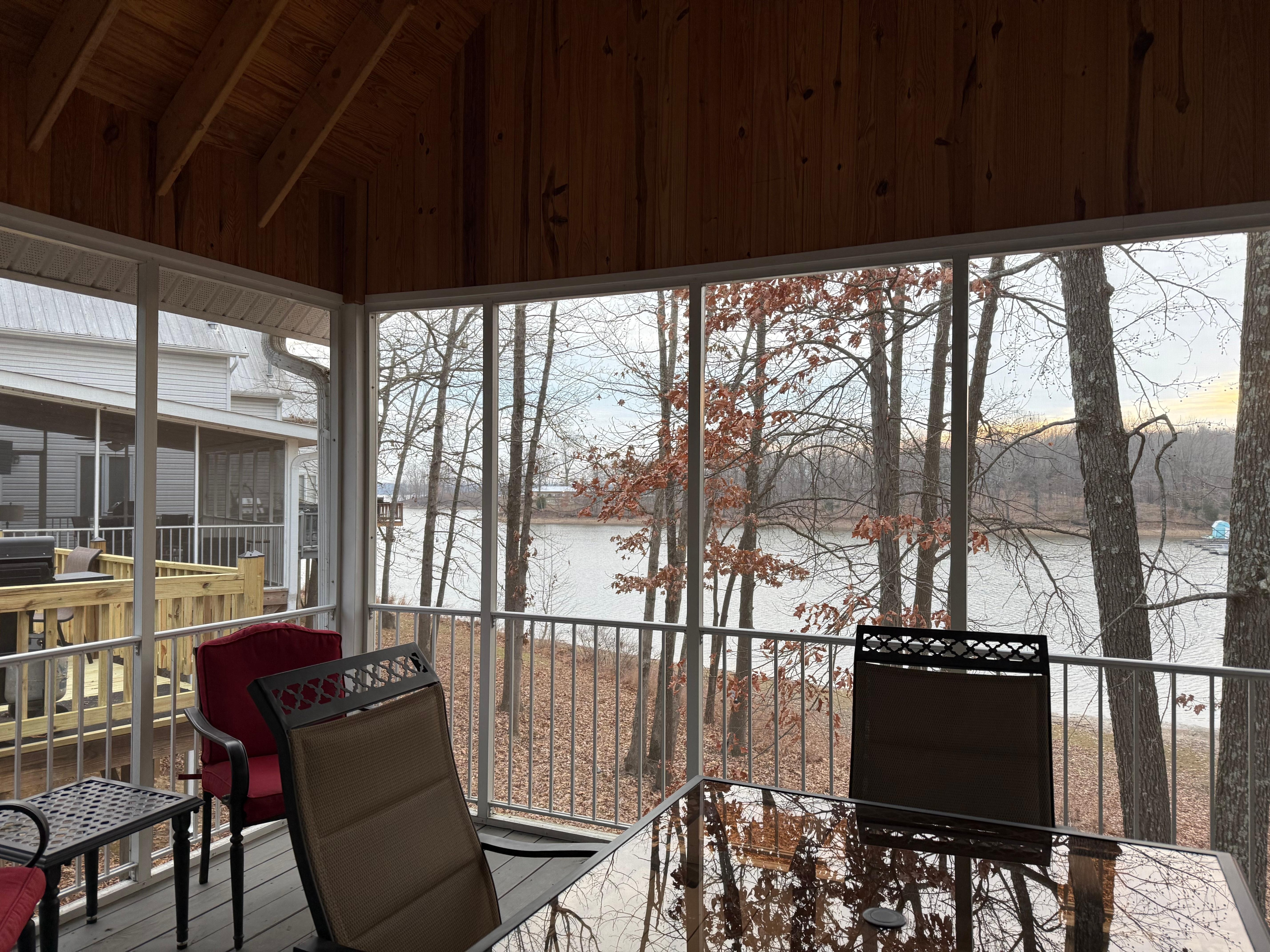 This charming one-bedroom, one-bath condo offers beautiful water views overlooking the bay and features all-new décor, warm colors, and stylish furnishings throughout. The bedroom includes a king-size bed, while the living area provides a cozy fireplace and a full-size pullout sofa for additional sleeping space. Guests will enjoy two flat-panel TVs with DVD players, a newly built screened-in porch perfect for relaxing, and close proximity to the lake, two outdoor pools, a playground, and boat rentals. This bright and inviting condo is strictly non-smoking and does not allow pets, making it a fresh and comfortable retreat.