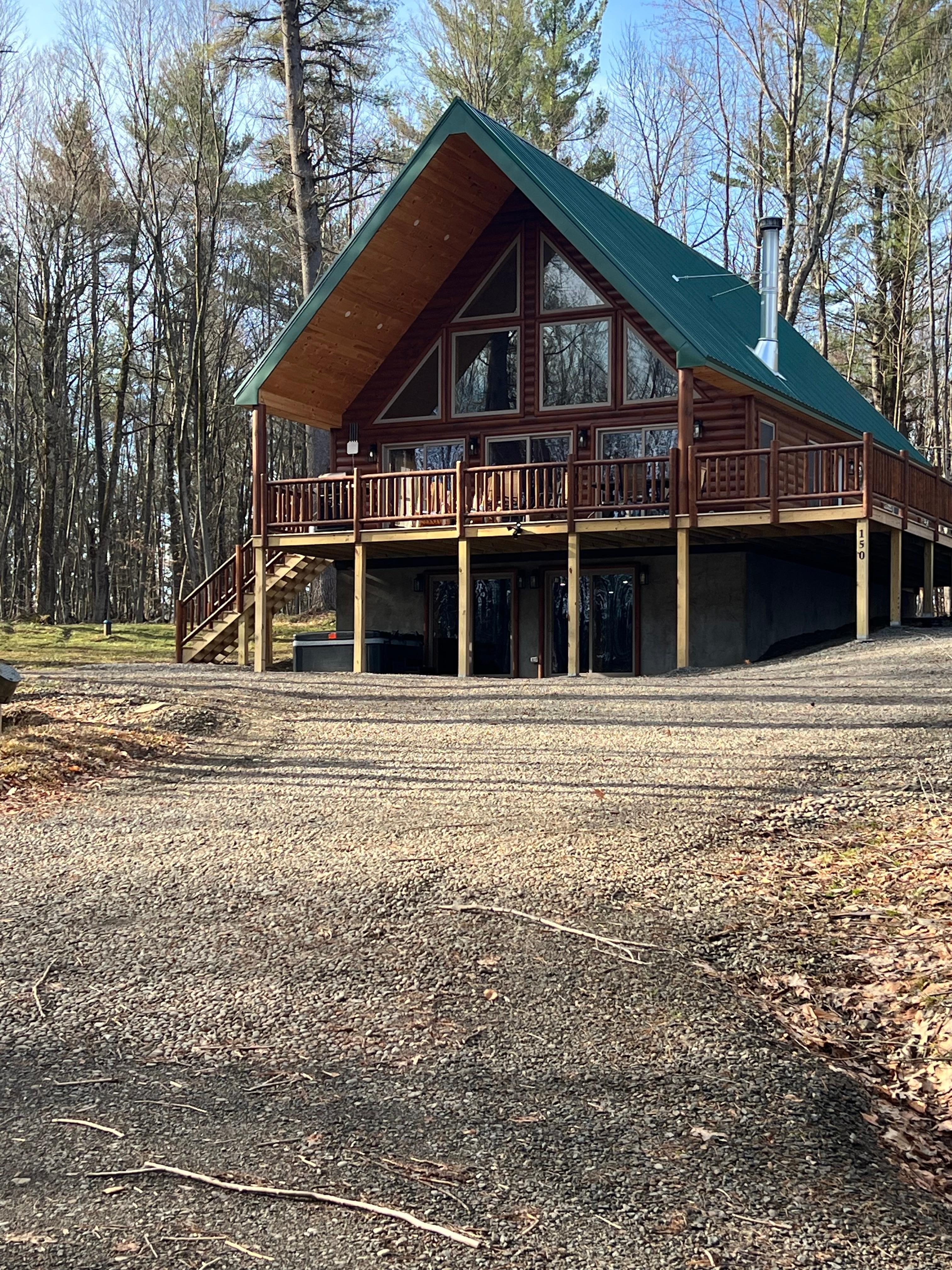 Nestled in the serene beauty of the Catskills, the newest addition to Catskills Cabin Rentals promises an idyllic retreat for nature enthusiasts and relaxation seekers alike. Catskills Cabin Rentals is the largest vacation rental group in the Catskills! This stunning log home, located on the peaceful shores of Lake Albanese, combines rustic charm with modern amenities for the perfect escape from the hustle and bustle of daily life. A Lakeside Retreat: Your Home Away from Home Covering an expansive 2,800 square feet, this log cabin features three spacious bedrooms and two full bathrooms, comfortably accommodating families or groups of friends. This is part of the Catskills Cabin Rentals Group on Lake Albanese. Should you need more accommodations please let us know as we have many others on the lake. With a wood-burning indoor fireplace that brings warmth and ambiance, you can curl up with a good book or enjoy quality time while surrounded by nature’s beauty. The heart of the home is its large, open-concept kitchen and dining area, where you can whip up delicious meals and gather around the table to create lasting memories. The downstairs hangout area offers a relaxed atmosphere, perfect for game nights or simply unwinding after a day of adventure. Outdoor Adventures Await The allure of Lake Albanese doesn’t stop at the door. With a picturesque lakefront location, guests can step outside to find a fire pit, dock, and an array of kayaks ready for your exploration. Spend your days paddling on the calm waters or fishing from the shore, soaking in the tranquility of this hidden gem. With only three other log homes on the lake, you can relish the peace and privacy that this location offers. Comfort and Style The main floor boasts a welcoming living room, defined by a stunning stone fireplace and towering floor-to-ceiling windows that showcase breathtaking views of the surrounding landscape. With three sliding glass doors that lead out to a wrap-around deck, you can effortlessly transition between indoor and outdoor living. The layout of this cabin is optimized for comfort and flow. The main floor includes a full bathroom and two cozy bedrooms—one featuring a queen-sized bed and the other a twin over queen bunk bed, perfect for families with kids. Retreat upstairs to the master bedroom, where you can indulge in a queen-sized bed and a private master bathroom, ensuring privacy and comfort during your stay. Entertainment and Exploration The downstairs area is designed for fun, featuring an open living space complete with air hockey and a pool table to keep guests entertained. Double sliding doors lead you out to the patio and fire pit, where you can gather around to share stories under the stars or roast marshmallows. For the adventurous spirits, the cabin sits on 200 acres of pristine land, presenting endless opportunities for hiking and exploration. Navigate the trails down to Cooper Creek, which meanders through the property, and immerse yourself in the beautiful Catskills wilderness.