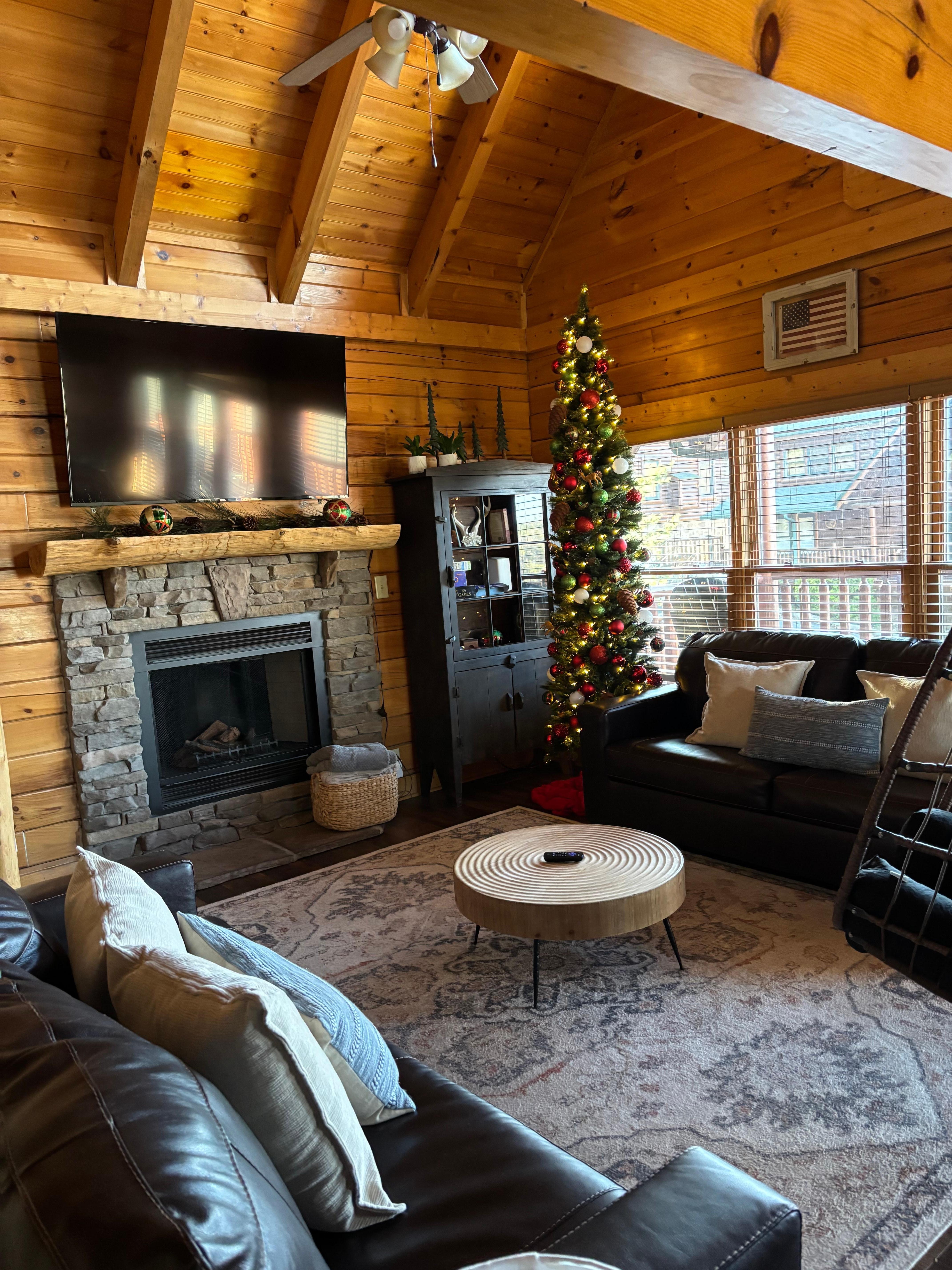 Escape to a luxurious haven in the heart of the Great Smoky Mountains. This exquisite 4-bedroom, 3-bath cabin combines modern amenities with rustic charm, offering an idyllic retreat for families and friends seeking relaxation and adventure alike. Located just minutes from the vibrant attractions of Pigeon Forge and Gatlinburg, this cabin is your gateway to unforgettable experiences in nature's splendor. 4 bed, 3 bath, game room. 2 King beds, 1 Queen bed, 5 twin bunks, 2 twin beds in loft area, each bedrooom has ceiling fan. Fully stocked kitchen with new appliances September 2025, high chair provided. Private hot tub, seasonal community pool, wraparound decks to enjoy Mountain Views. On site parking for up to 3 cars, no mountain roads to access cabin. Safe neighborhood, only minutes from attractions ! 5 miles from downtown Pigeon Forge, 12 miles to Gatlinburg. **Please note: you are in nature, surrounded by nature as well, encountering/seeing insects and wildlife are possible .