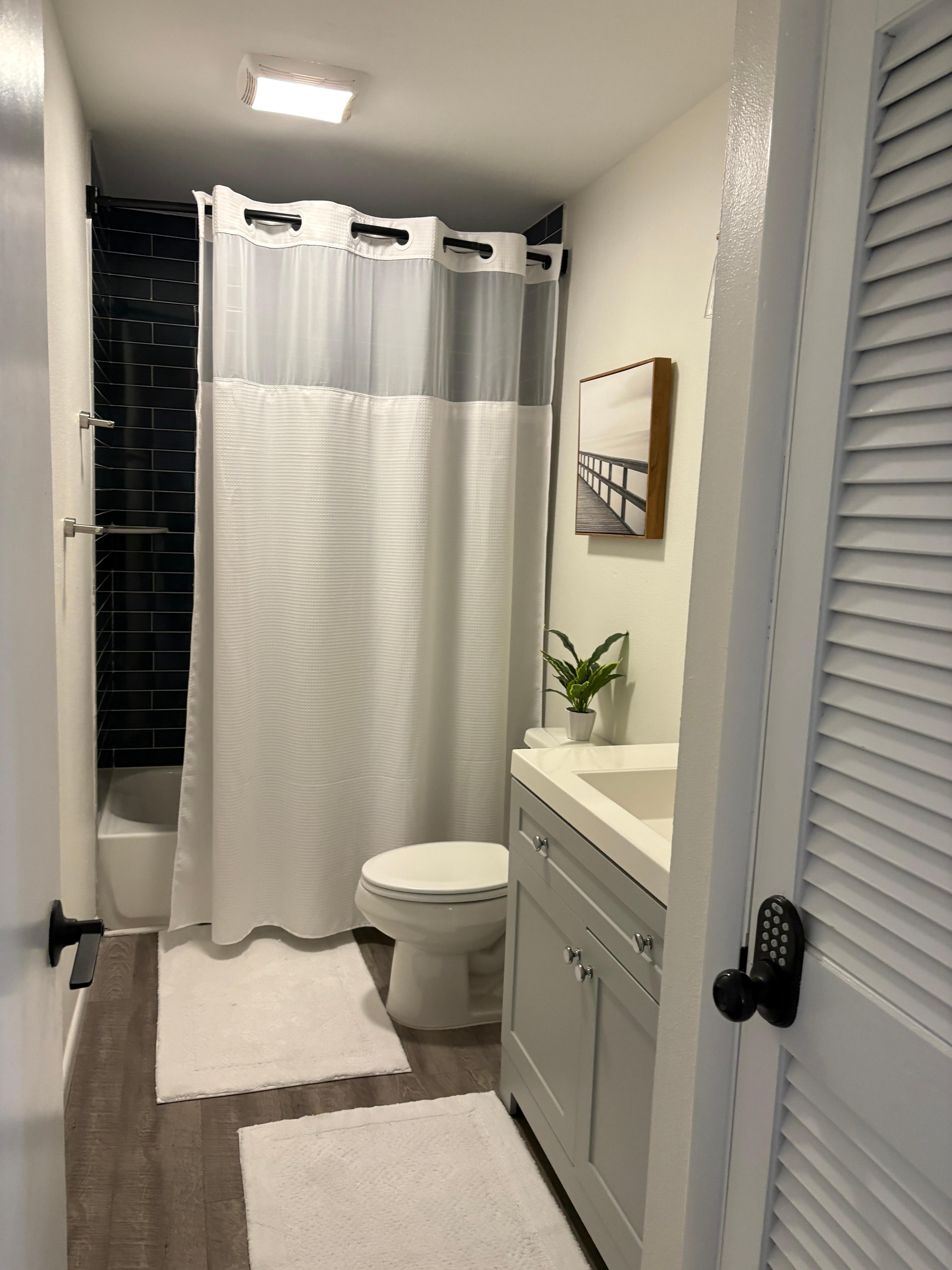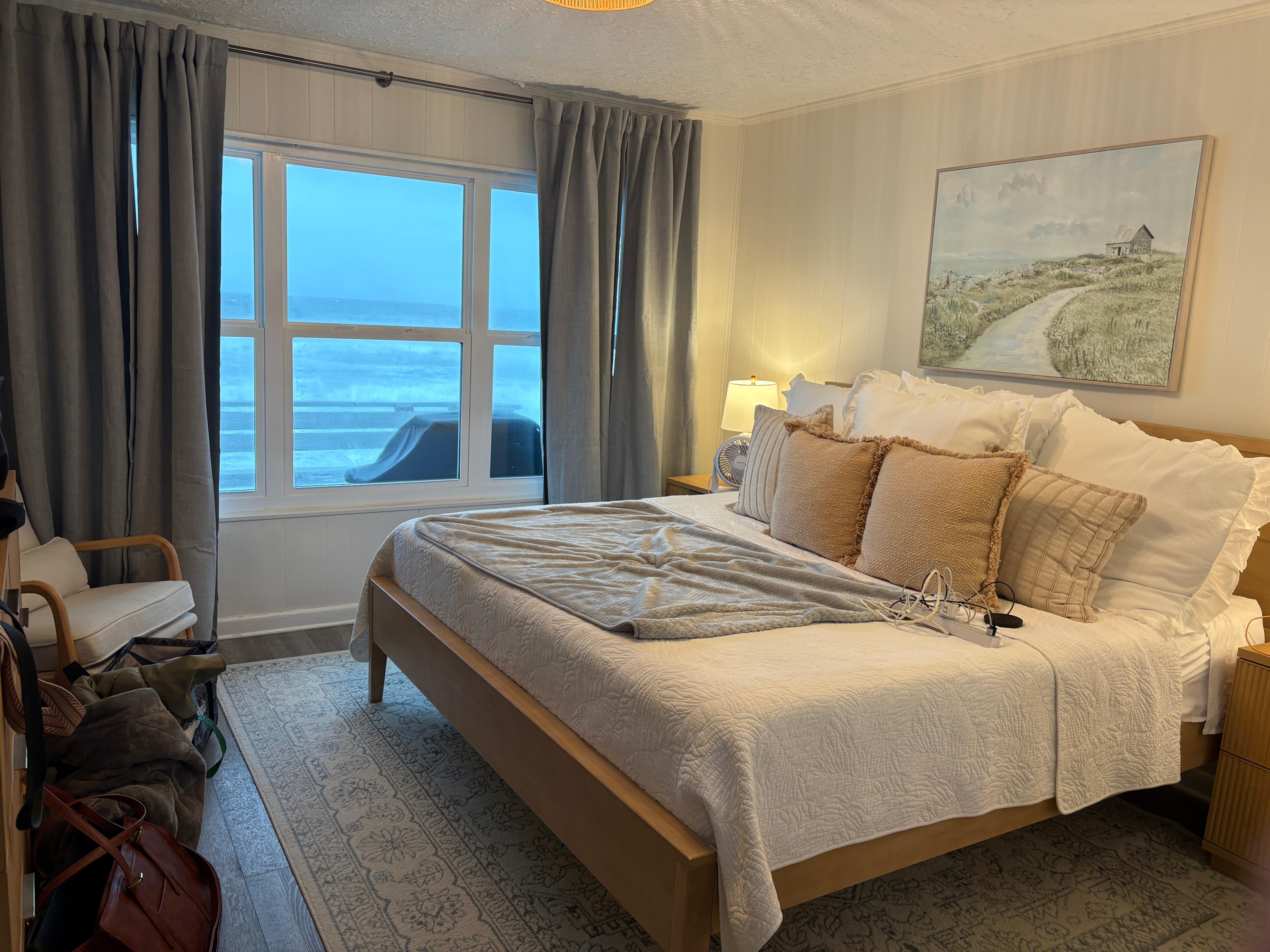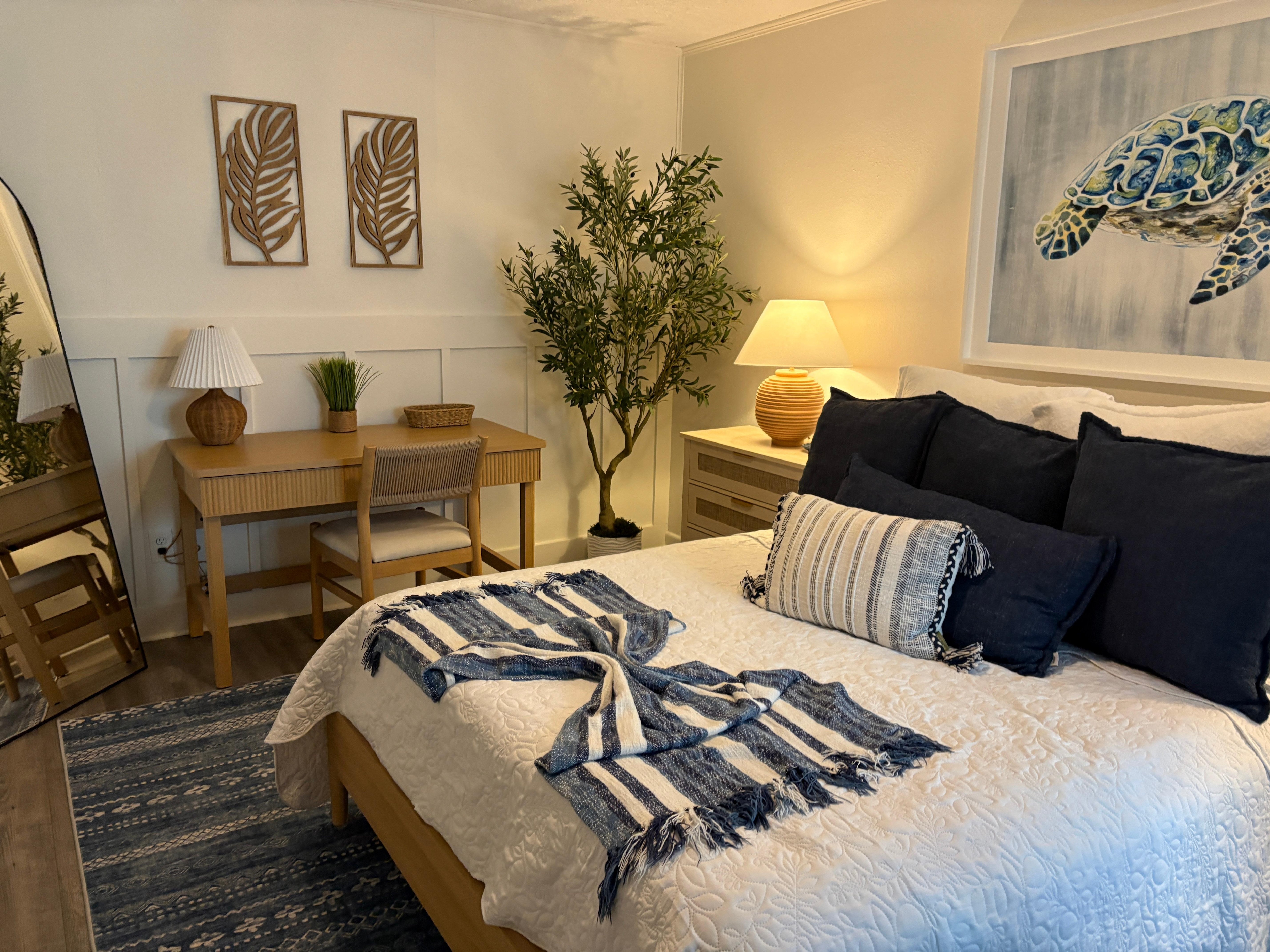 Each bedroom offers an ocean view, cozy linens, and streaming access for a comfortable night in. Two full bathrooms are conveniently located off the hallway.