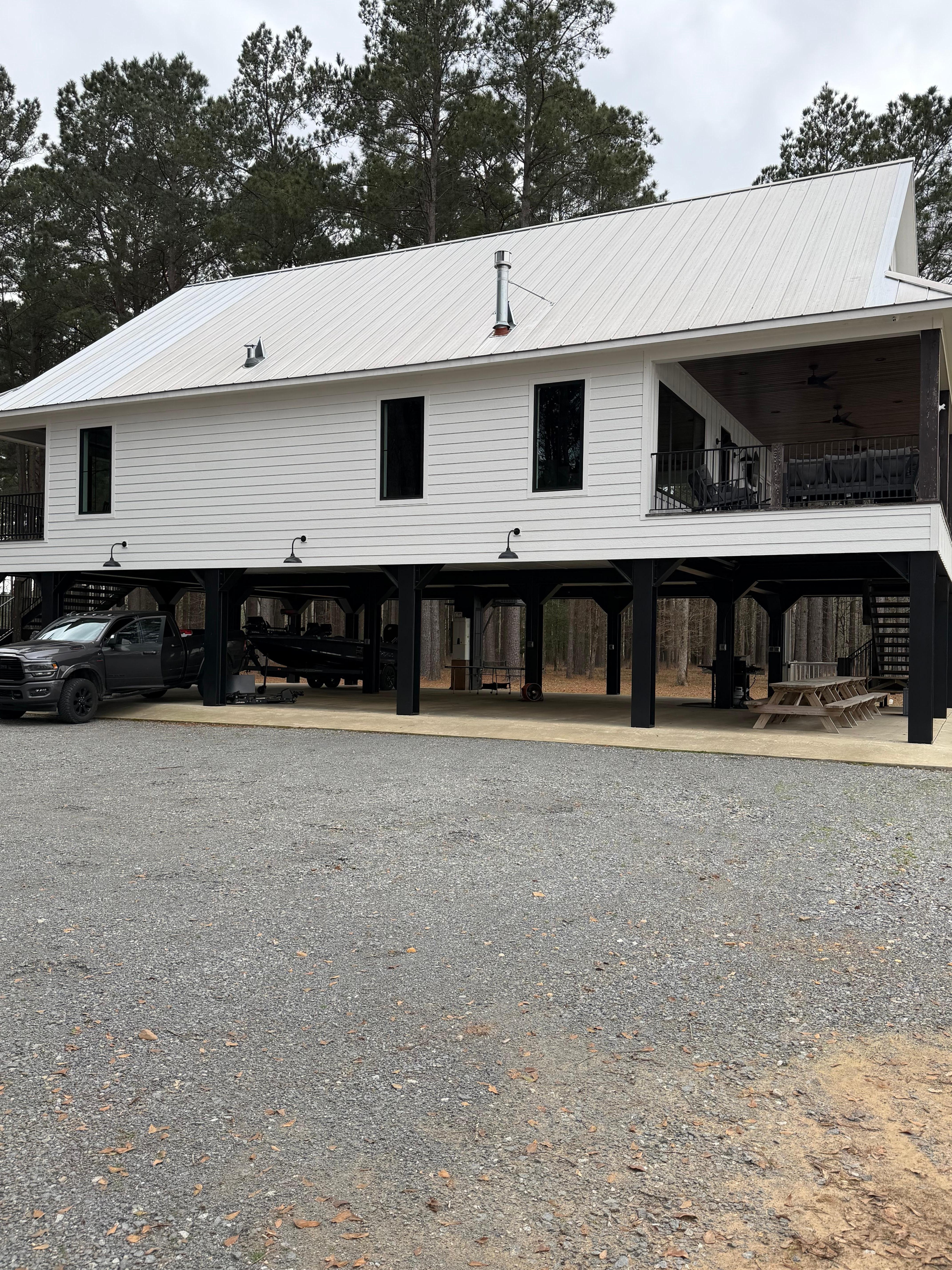 Escape to tranquility in this beautifully crafted luxury cabin, nestled in the serene woods of Lake D'Arbonne. Perfect for families or group getaways, this spacious retreat comfortably sleeps up to 8 guests. Enjoy the open area beneath the camp-ideal for parking, grilling, and outdoor entertaining. Inside, you'll find a fully stocked kitchen. Unwind on the porch as you take in stunning lake views, complete with premium patio furniture for relaxing in style.
