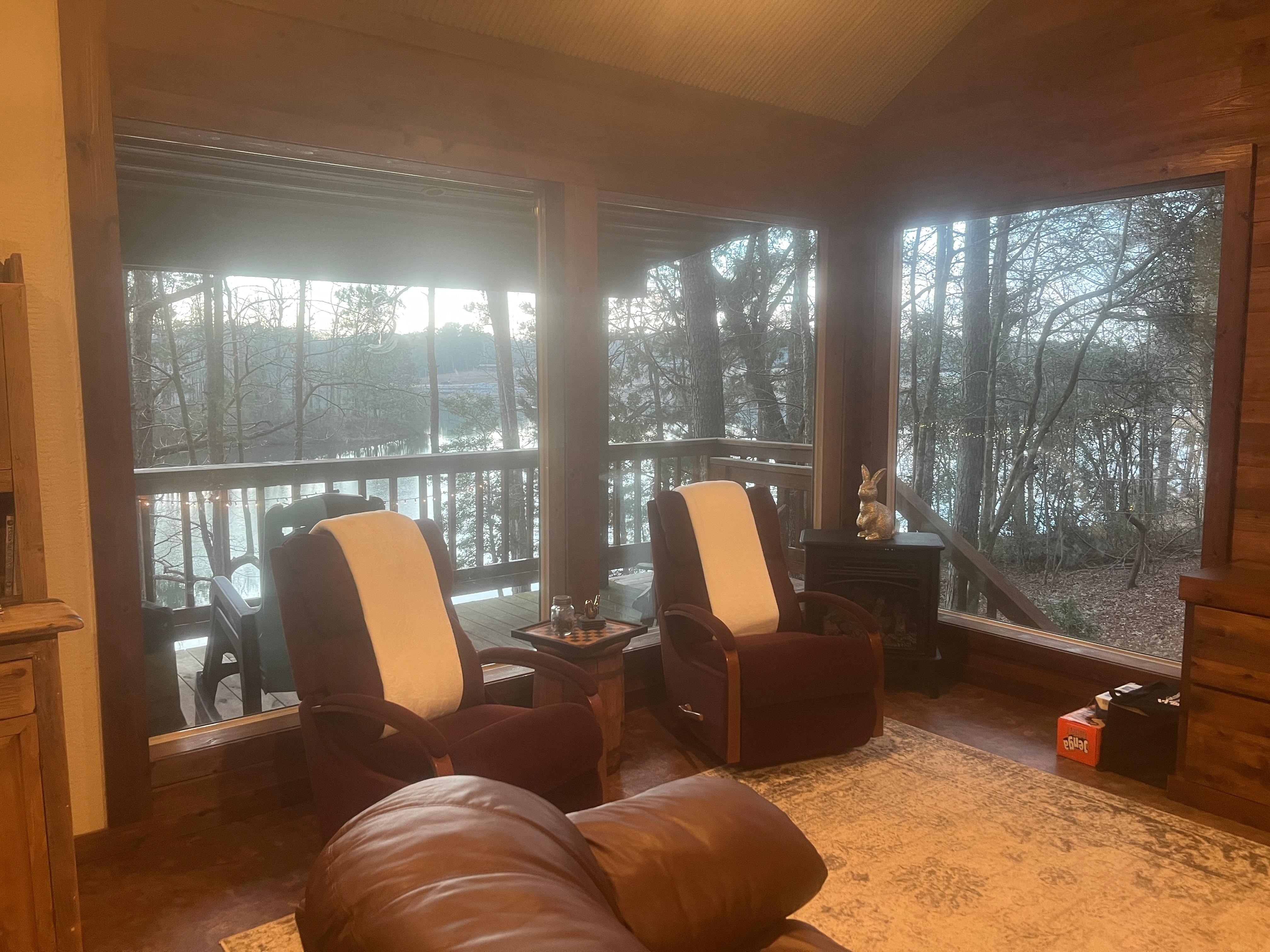 Enjoy your morning coffee accompanied by the delightful sights and sounds of nature—birds, squirrels, ducks, geese, eagles, otters, and deer frequent the cozy retreat.