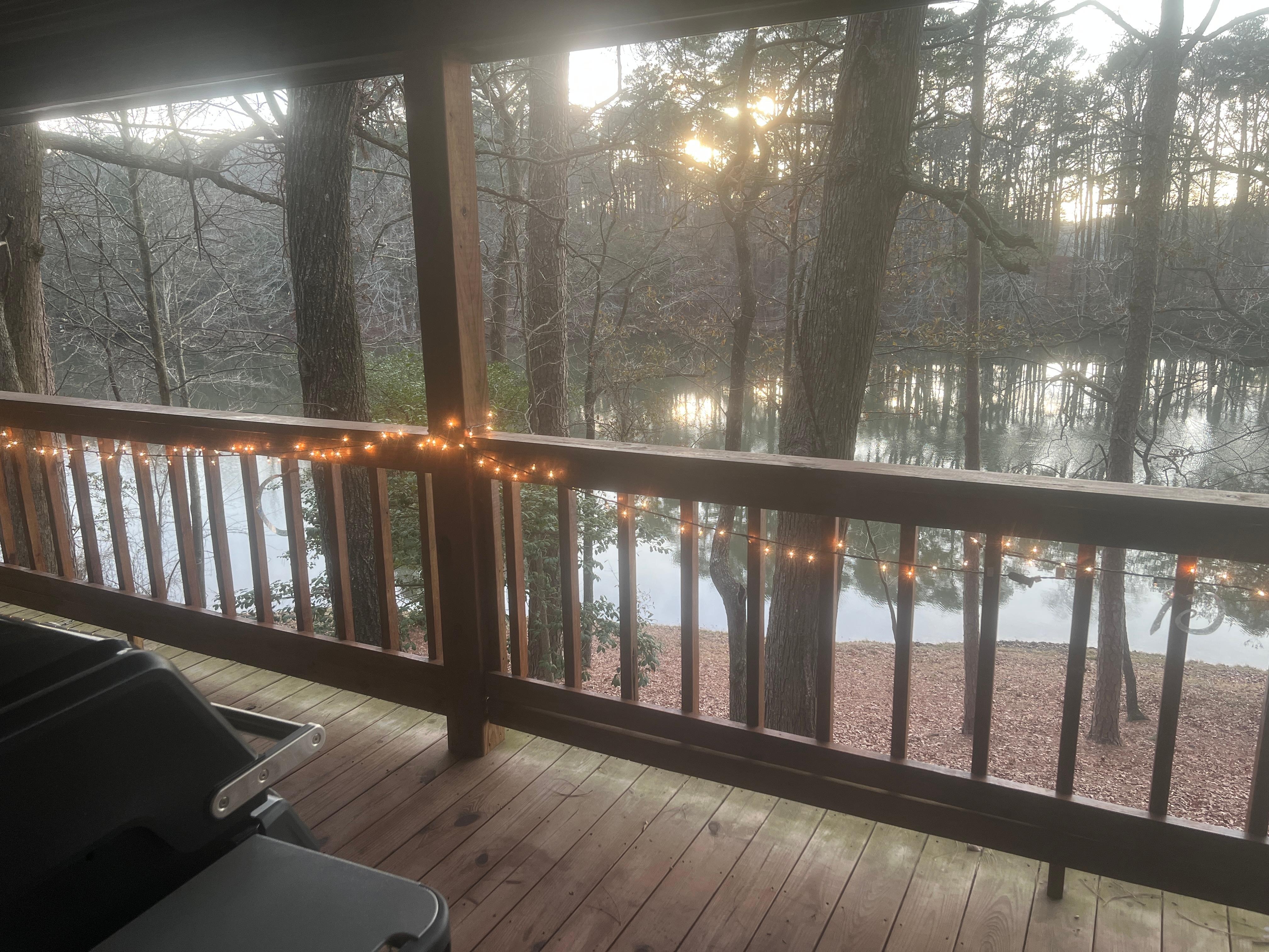 Lucky Dog Cabin provides a tranquil, private escape. It sits on the banks of Prentiss Walker Lake, an 81-acre lake and state park, where visitors can enjoy fishing, boating, waterskiing, jet skiing, picnicking, and camping.