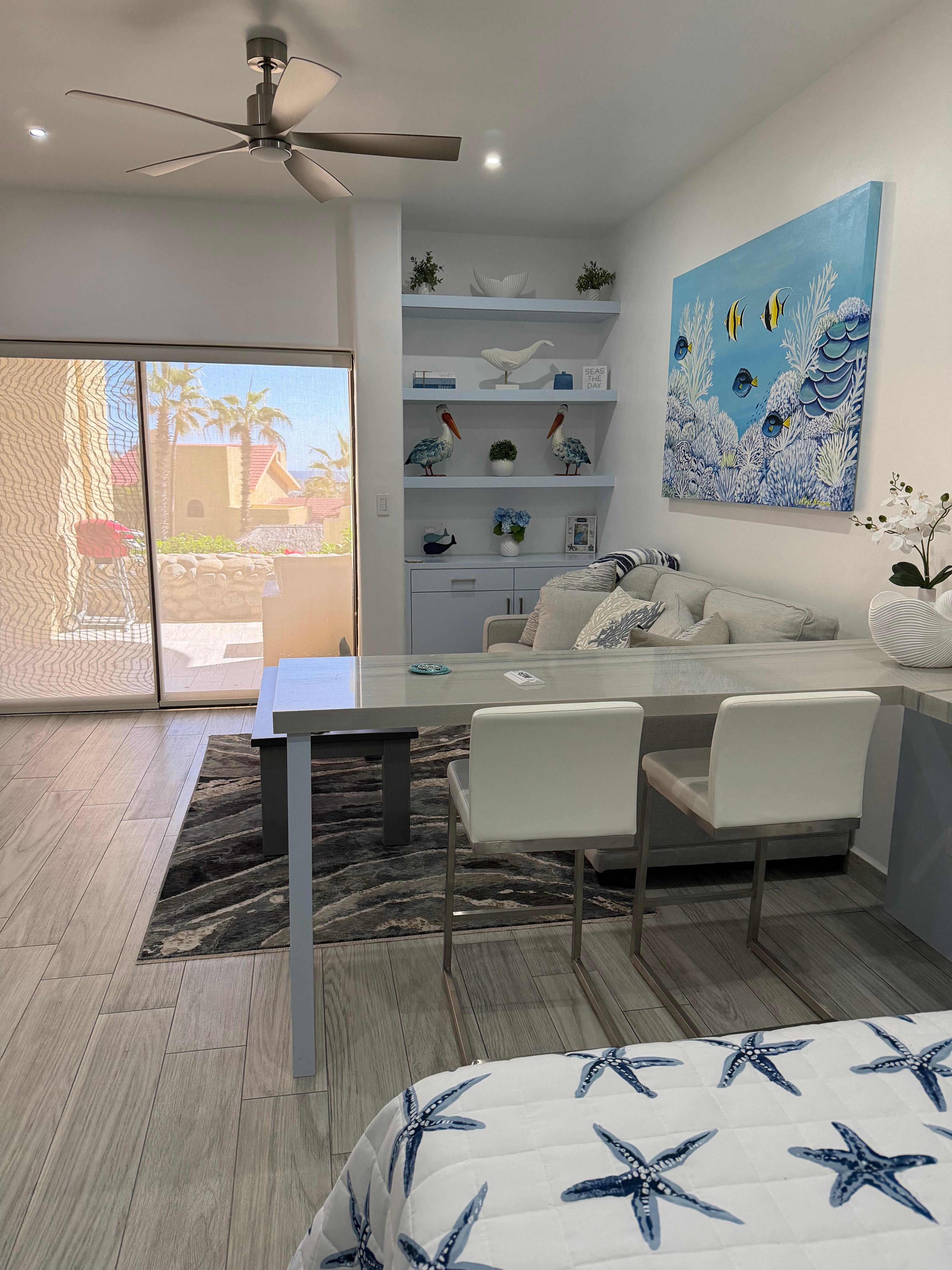 Don’t forget the dining/work island that seats 2 so you can enjoy the ocean view even while working or doing a Zoom meeting.