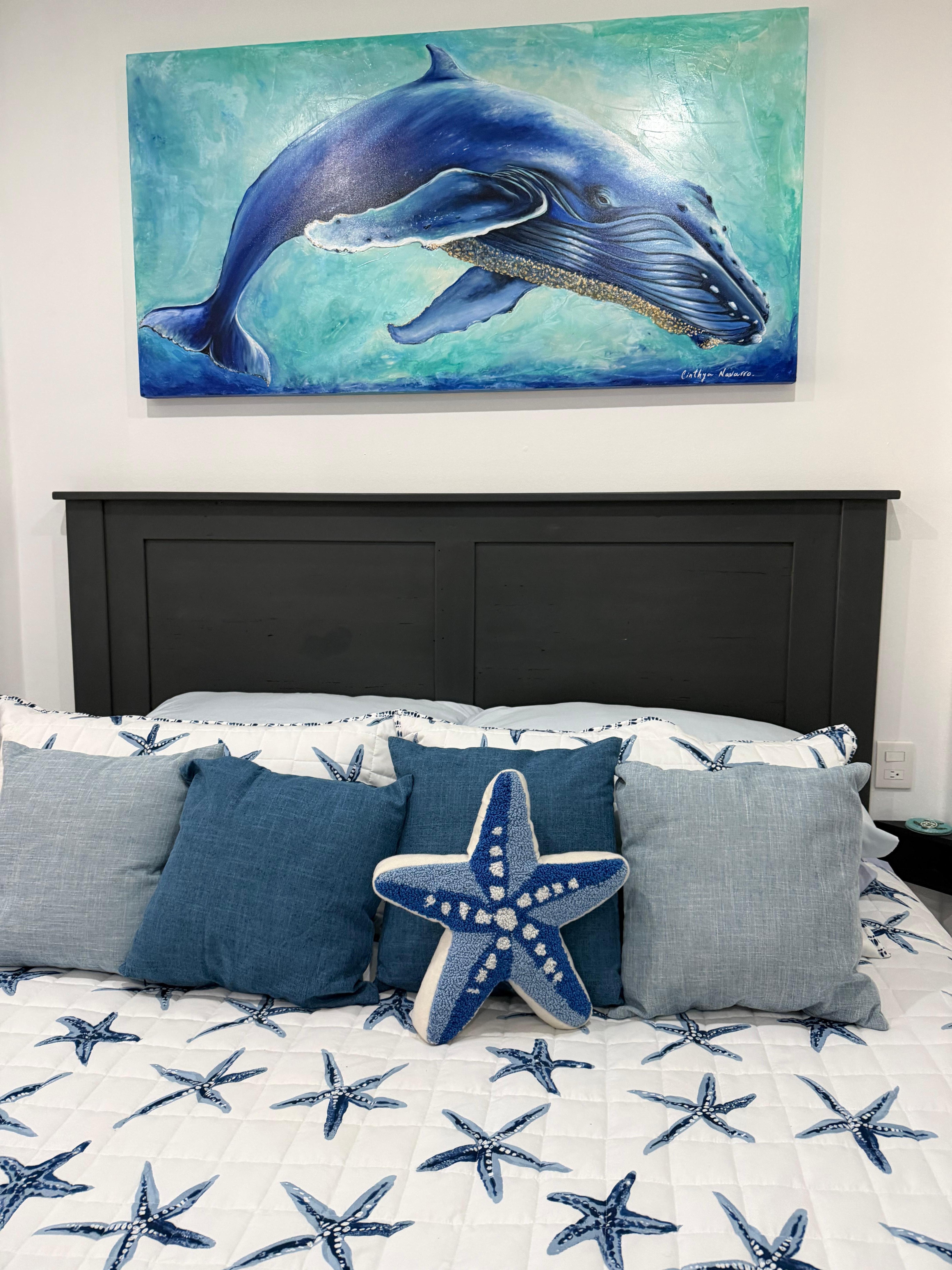 You can tell this is a special place, not your average vacation rental, when you open the door and see the ocean of blue and white with calming and fun custom art in this first-floor stunner.