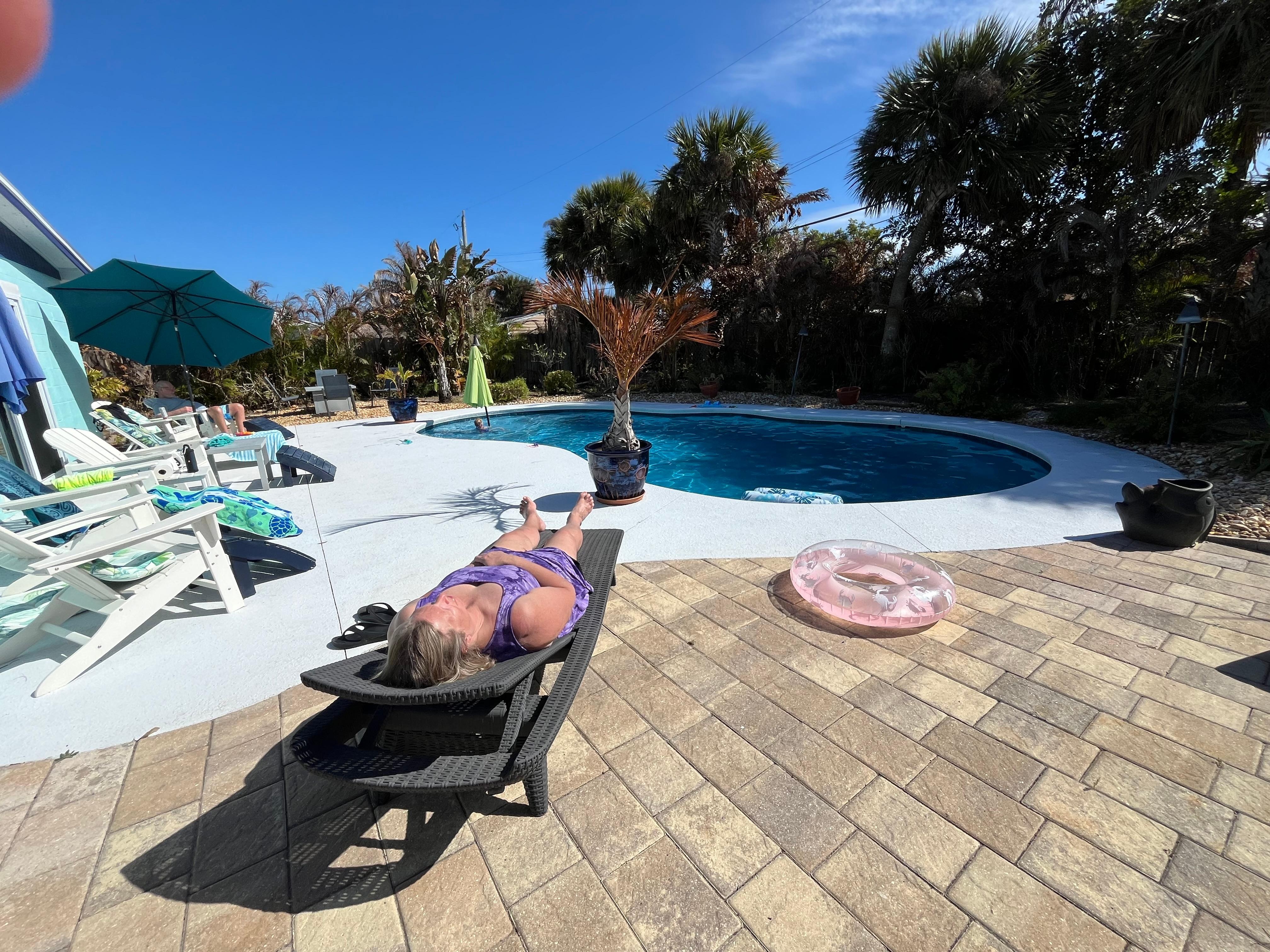 32 x 18温水プール、パティオ、ラウンジチェア、たくさんの屋外席。 熱帯の裏庭、果樹、ハーブガーデン、娯楽のための十分なスペース。