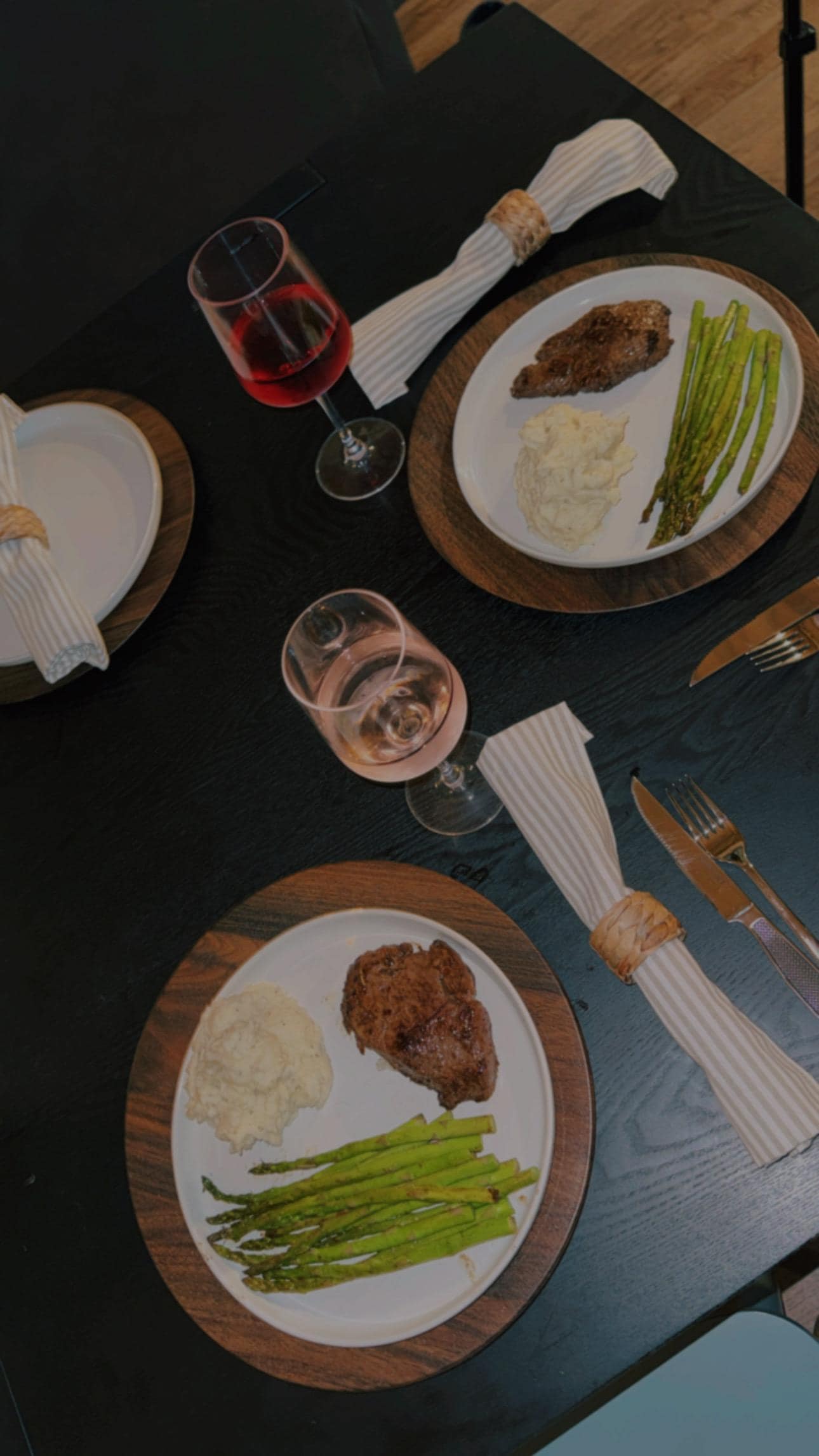 One Master Suite features soaring vaulted ceilings and natural light pouring through elevated windows, creating a peaceful, elevated retreat. The second Master Suite carries a moodier, intimate tone — a cozy luxury hideaway for slow mornings or romantic evenings. Both suites offer private access to the wraparound porch and each includes a spa-inspired ensuite with granite counters, soaking tub, and a rainfall + massaging shower system with diverter to dial in the perfect experience. Anti-fog LED mirrors make it easy to get ready for dinner or a night out, and one suite includes a spacious closet perfect for giving little ones a quiet nap space.