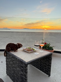 Incredible beachfront home with furnished patio, balcony & free WiFi