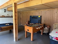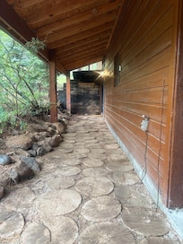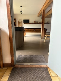 We chose this property for its "wheelchair accessible" listing, but it presented major challenges for me as a wheelchair user. The entrance walkway, made of uneven log rounds, was a trip hazard and blocked my motorized chair. A 4.5” step required my 3’ ramp, but tight landscaping limited maneuvering space. Inside, furniture and a large rug hindered navigation. Host Karen was responsive, allowing us to rearrange items, which helped. The first-floor bedroom was spacious, but the 27.5” door and 27” hallway clearance were tight. The bathroom was inaccessible: the main entry was 21.25” with a 1.5” threshold, and the bedroom’s shower entry was 23”. The shower (35”x36”, 4.5” lip, no bench) was unusable, forcing me to use bed baths. With my wife’s help, I managed toilet transfers. The game room (hot tub, pool table, etc.) in the garage needed my 5’ ramp to access due to a level drop. The outdoor seating area was unreachable (4.5” threshold). A furniture piece narrowed the second-floor stair access to 28”, though this didn’t affect me. Karen was accommodating, but the “accessible” label is misleading due to uneven paths, tight doorways, and an unusable bathroom. I hope this review informs other wheelchair users and encourages the host to address the classification of the property for future guests.