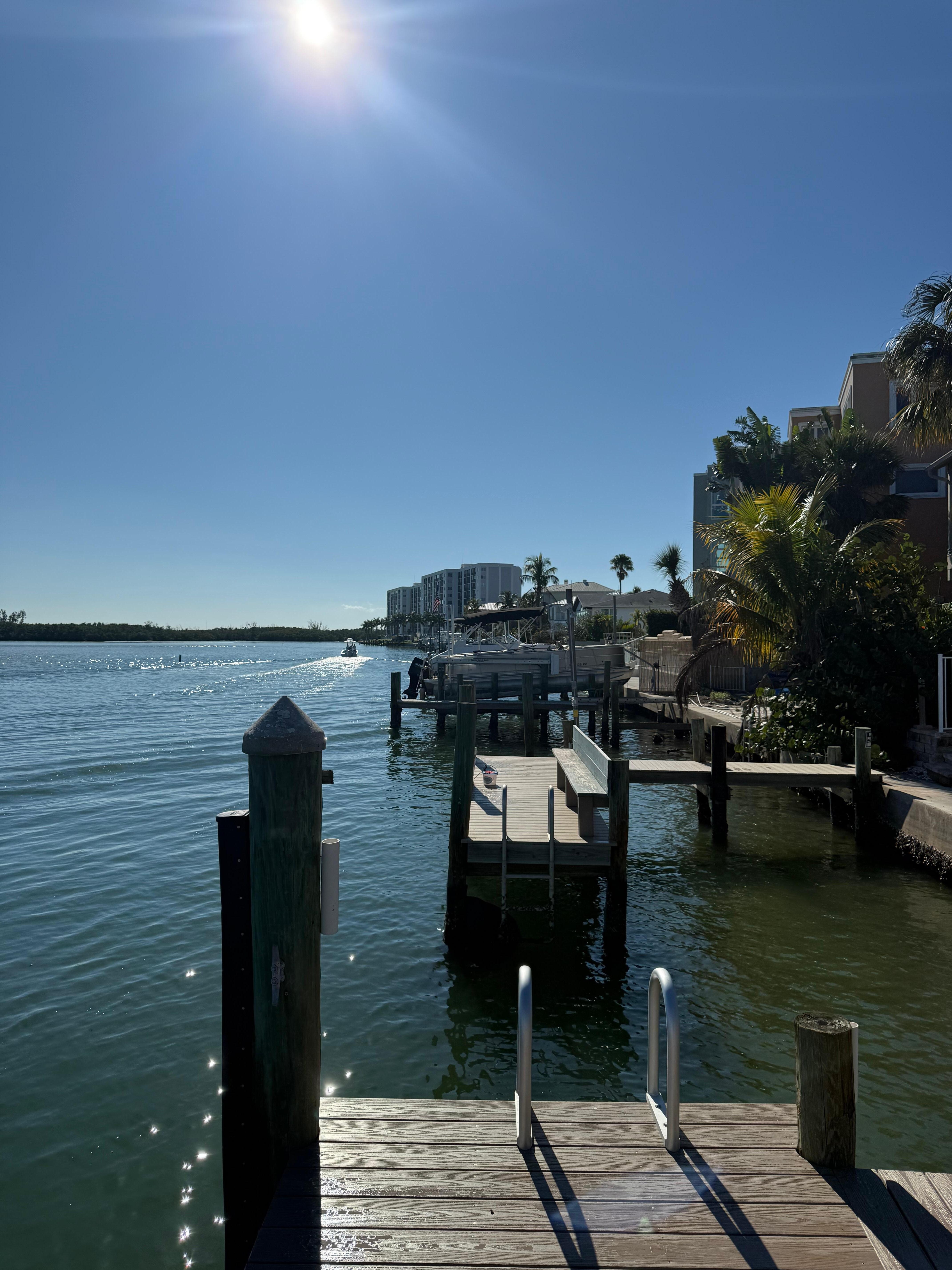 私たちのアパートのすぐ後ろは湾の水です。 自然が好きな人は、この場所が好きです。 1つは、すぐ近くにある野生生物、特にいくつかの種類の飛び跳ねる魚、鳥、ペリカン、イビス、および鯨の沢山の鳥を信じることはありません。 マナティー、あまりにも。 あなたがいつでも後ろに出かけるか、パティオのドアを開けると、イルカがよく見えます! 彼らは私たちのドックから約50フィート離れた日常的な出来事です。 何度もあなたは彼らが大声で吐き出すのを聞くでしょう、そしてあなたは水に目を向けることを知っています。