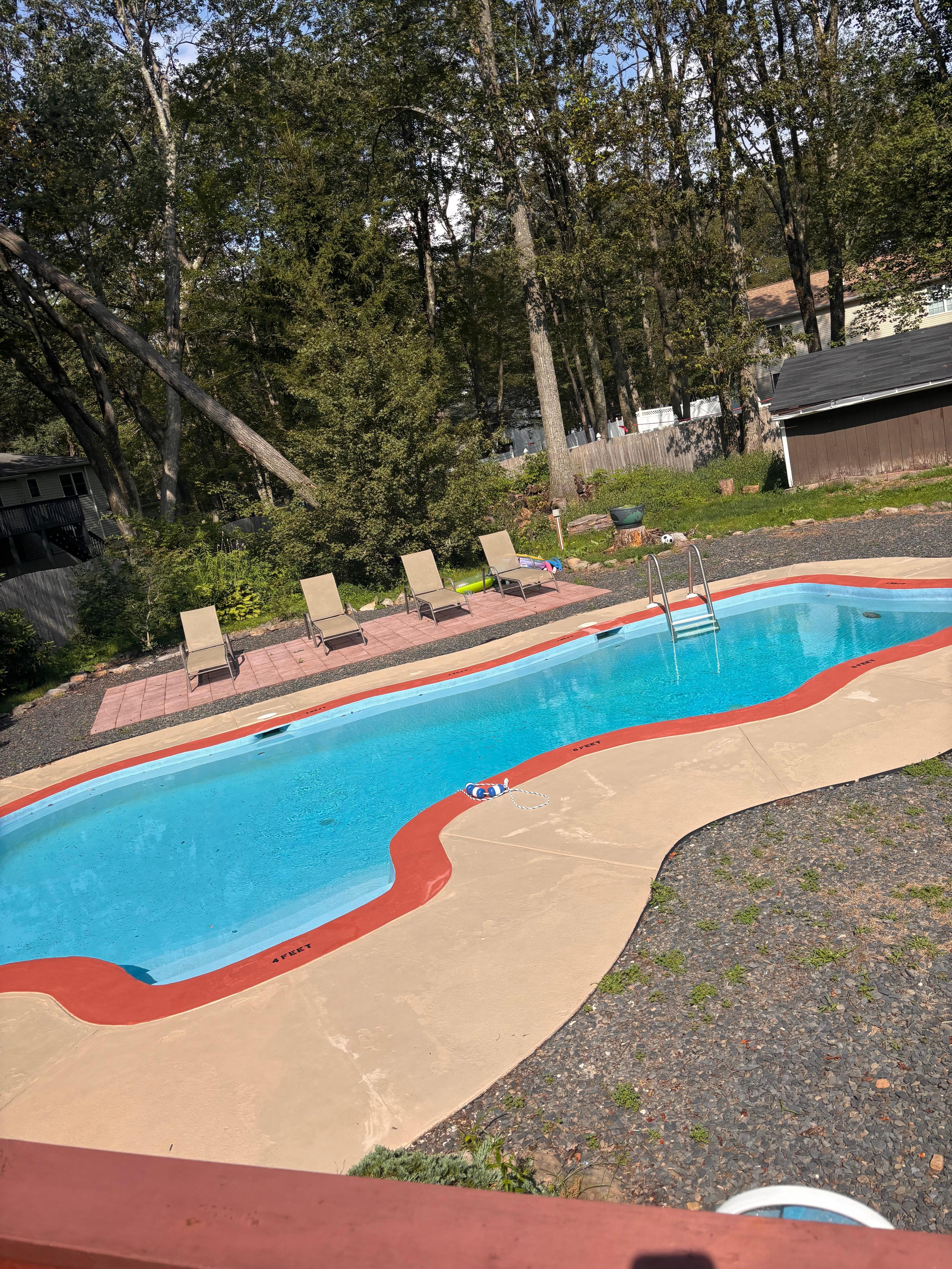Our home boasts plenty of activities to do whether you are inside or outside the home. Situated on over 0.50 acres of land, property is professionally landscaped to maximize space and functionality to provide the best and memorable experiences for our guests to enjoy. Take a swim in our private swimming pool (non-heated), lounge at our poolside chaises, and immerse in our brand new 7-person hot tub with massage jets and waterfall. Relax on our huge deck with two picnic tables and cook meals with the BBQ grill with propane provided. This is the house to enjoy and relax for any getaway/vacation in the Poconos!