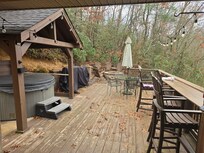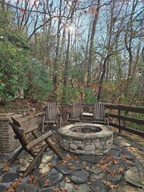 We had a great time having our whole family (kids, parents, grandparents) in one cabin for the weekend for our visit to the Polar Express. An absolute favorite was the outdoor area with the almost full wrap around porch, hot tub, and fire pit. We all had plenty of space to spread out to either enjoy playing (kids) or having a few quiet, relaxing moment (adults). The house was well stocked, and it was great for those of us who arrived late to have the outdoor lights on since the driveway is steep. The only word of caution I would give to anyone staying with small kids - do not let them wander out front by themselves as the front yard does drop off. Other than that - the cabin is a perfect place to relax for the weekend without needing to go anywhere else. I'd highly recommend staying here!