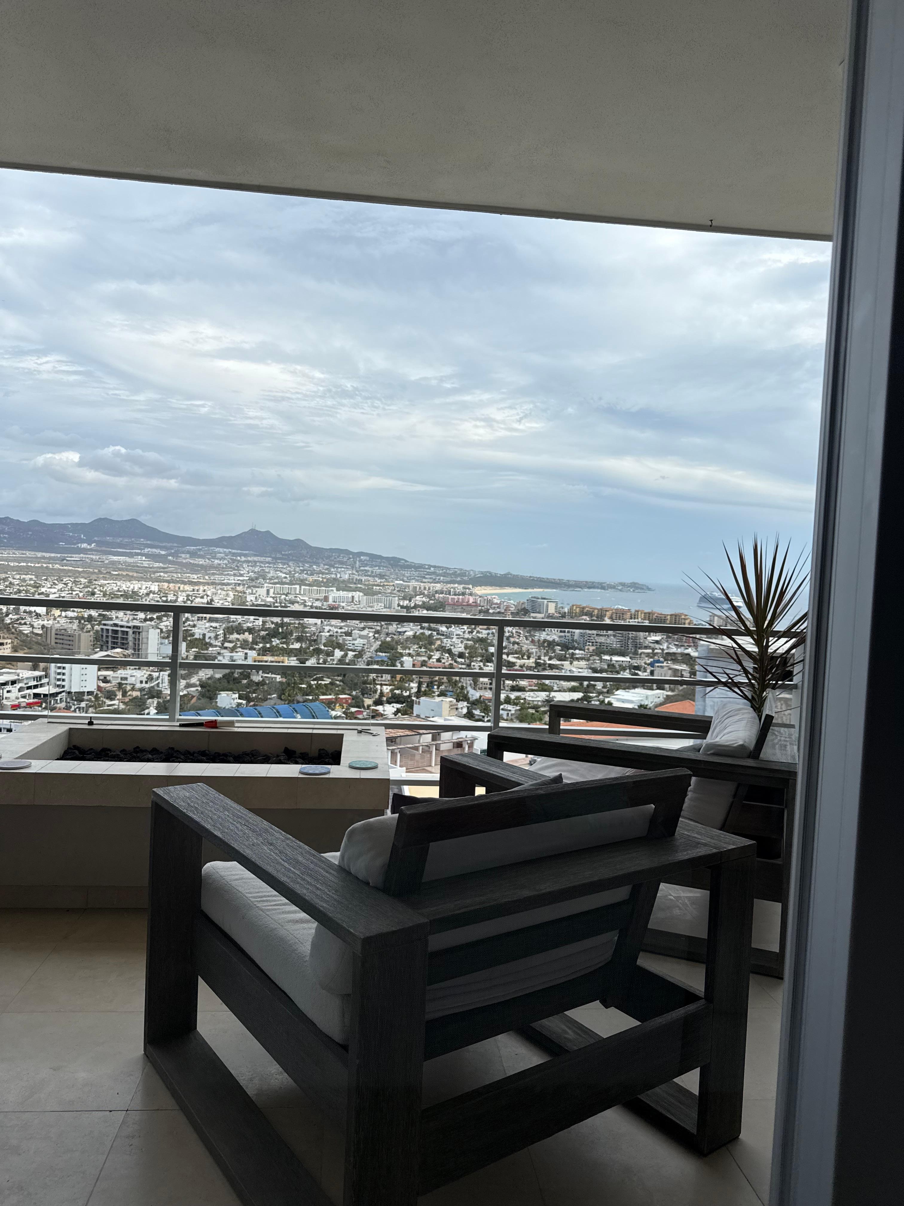 テラスにはテーブル付きの2人用のラウンジャー、テーブル付きの4人用の座席、暖炉のそばでリラックスしてワインを楽しんだり、サンルーカスのダウンタウンのナイトライフを見ながら火を落としましょう。