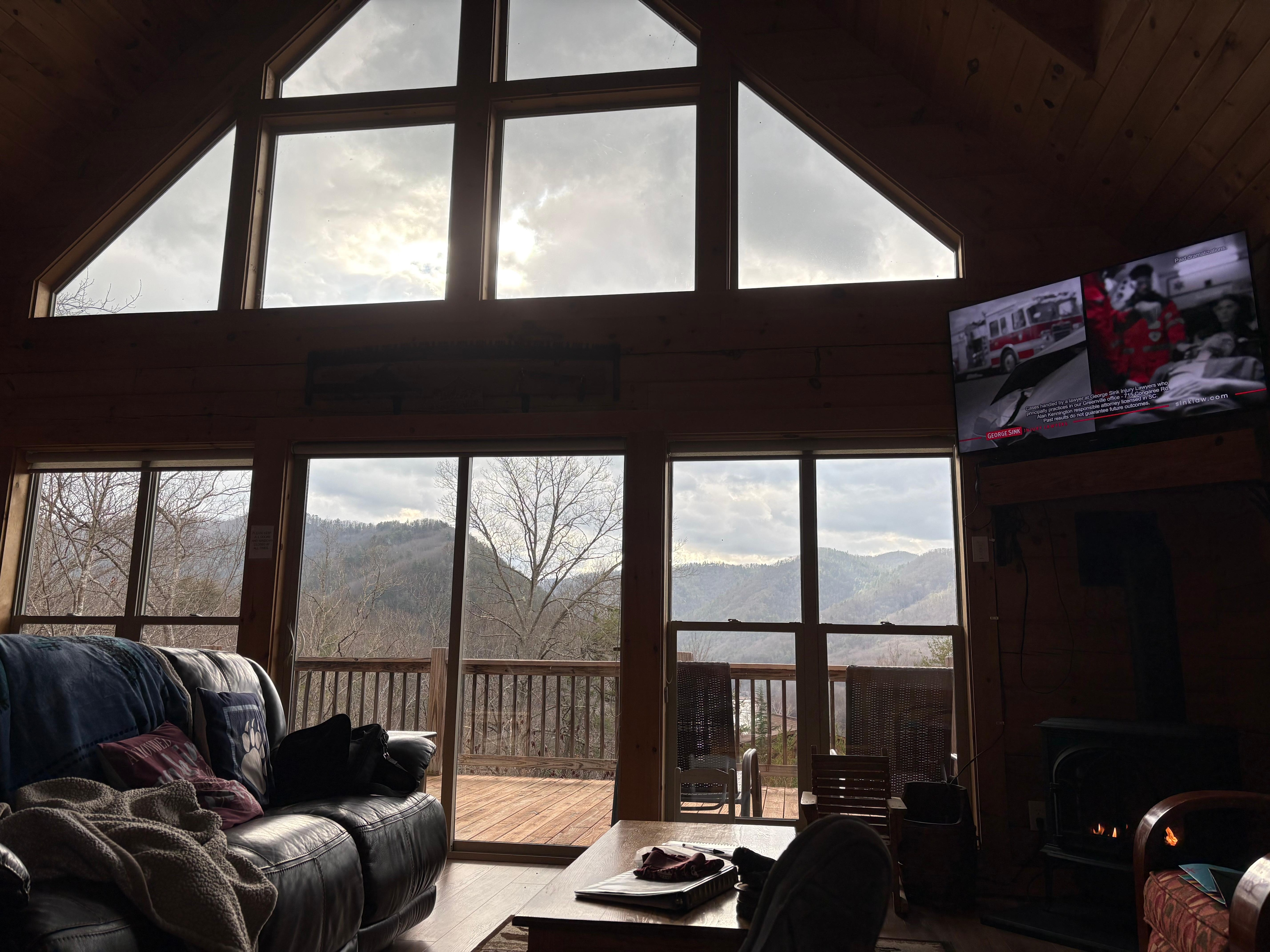 リバーフロントにあるキッチンとパティオを備えたキャビン