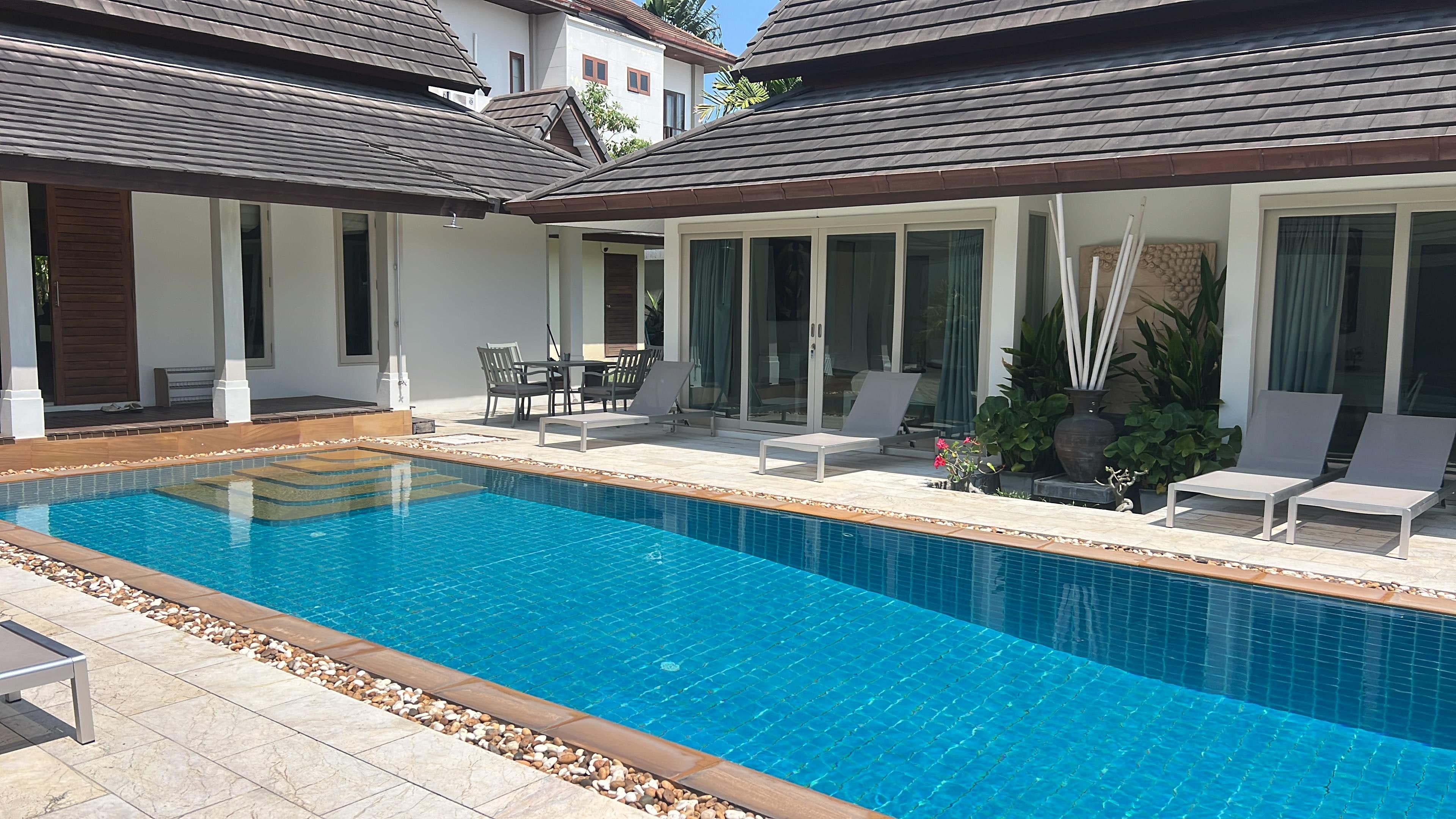 広いプールのあるタイ風ヴィラ