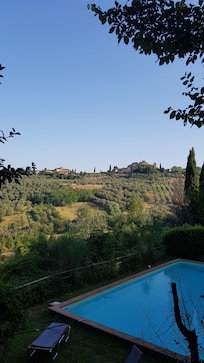 Ein schönes, geräumiges und mit Liebe eingerichtetes Haus in einer traumhaften Landschaft. Es war sehr sauber und der Empfang und die Betreuung durch Caterina und Alessandro war sehr herzlich. Wenn etwas fehlte, wurde sofort Abhilfe geschaffen, auf Nachrichten wurde sehr schnell reagiert. Der Pool ist groß und erfrischend, liegt auch nicht den ganzen Tag in der Sonne, so dass man ihn lang genießen kann. Schade ist nur, dass er sich nicht beleuchten lässt.Toll ist die überdachte Terrasse, auf der wir meist gegessen haben. Leider ist das Dach nur Sonnenschutz, so dass bei Regen immer alles nass wird. Ein wetterfestes Dach wäre toll gewesen, da es hin und wieder geregnet hat. Das letzte kleine Minus war die Internetverbindung: man musste den WLAN-Verstärker in dem Zimmer einstecken, in dem man gerade ins Internet wollte, die Reichweite ist sehr begrenzt, in der Dependance gab es gar kein Internet. Alles in allem haben wir uns aber sehr, sehr wohl gefühlt. Es ist so traumhaft schön dort, der Sonnenuntergang und der Blick in die umliegenden Ortschaften... man kann so viele wunderschöne Orte besuchen - die Zeit hat nicht gereicht!Vielen Dank an Caterina und Alessandro: wir können uns sehr gut vorstellen, wieder zu kommen. A presto !