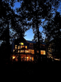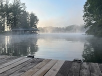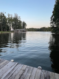 This house was PERFECT!! Where do I start? Beautiful home situated near the end of a cul-de-sac on a quiet street. Beautiful green manicured lawns and a meandering path to your own private dock. This house isn't just situated on the lake, it is in a private cove which is even more magical. You can safely and privately swim off the dock. The setting is so pretty, it is quite a gem of a spot. Early morning you are greeted with the sun shining through the trees and mist rising off the water. The water is soooo warm in the summer, that is such a treat. You can soak in it all day. Now to the house. Perfectly situated to get the morning eastern sun and avoid the hot afternoon sun. You enter the house and are immediately greeted with 2-story high windows with direct views of the lake. Walk through the sliding door to your private deck and views of the lake - my favorite spot at the house. This house is so well stocked with all the supplies you need. It is perfect for multiple families as there is a master bath and en-suite on three levels. The basement has a second kitchen with arcade, gaming table and lounge area. It also offers a nice amount of privacy. The main level with kitchen is so pretty with the large windows. The top level has 3 bedrooms, so ample room for people. Marvin was an excellent host - so professional and courteous, responding quickly to any questions we had. He also had additional info about the area whenever I asked. Thank you so much for a wonderful stay!!!