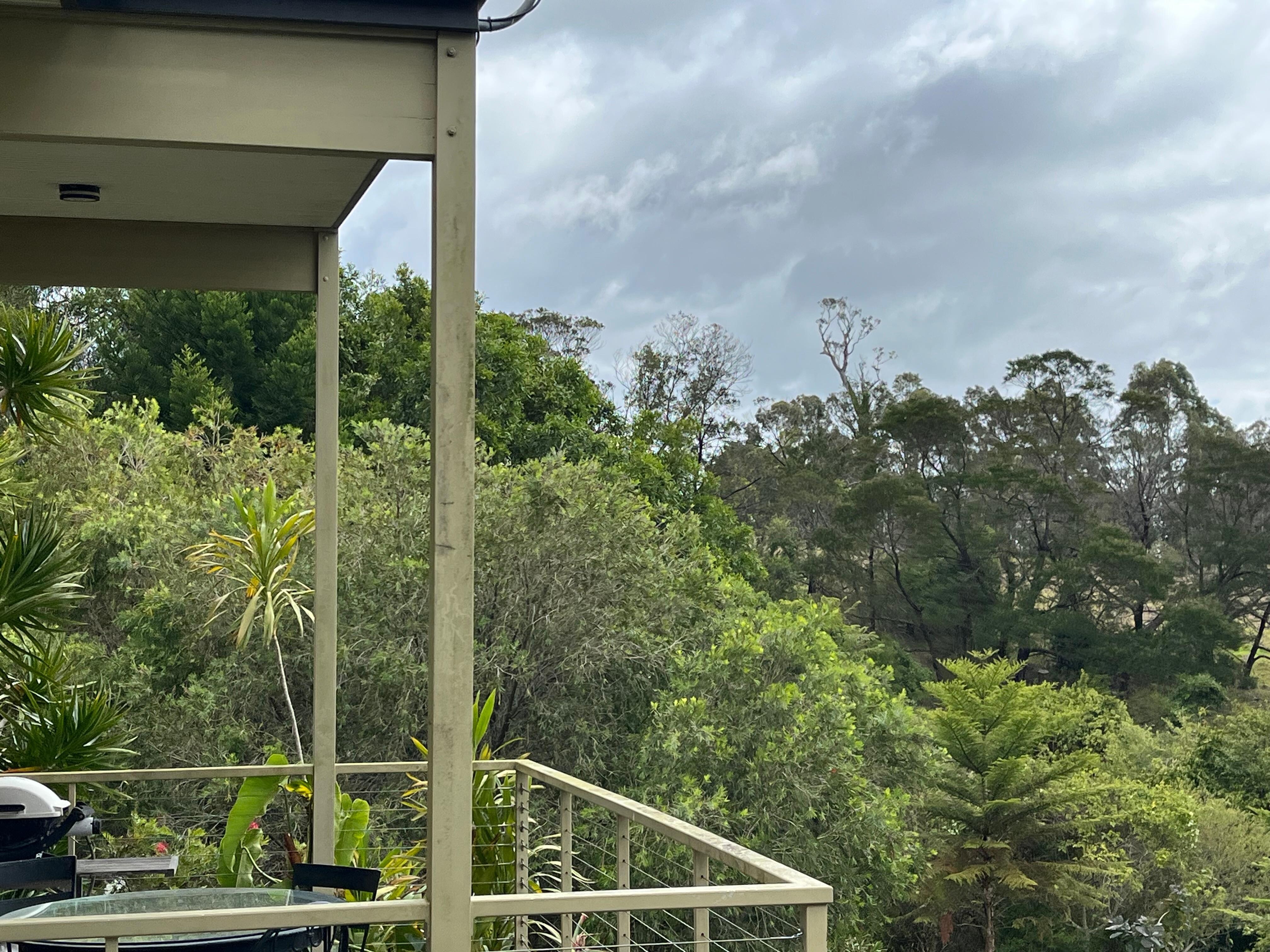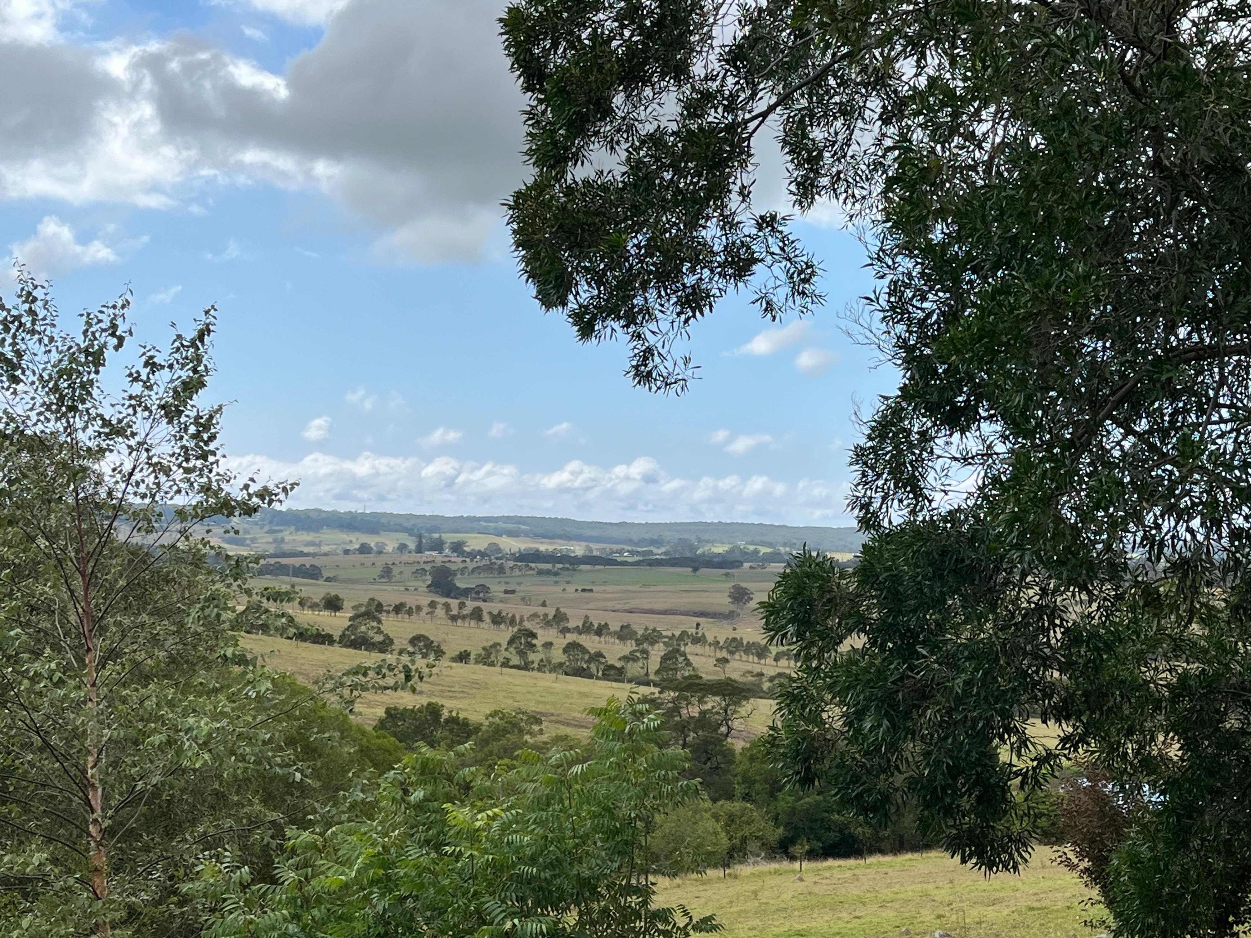FlameTreeの「キャビン」は、北と東に大きな窓があるパッシブソーラーデザインです。 ラウンジとベッドルームからのベランダからは、ミルトンの町に向かって広がる緑の牧草地の穏やかな景色が楽しめます。
