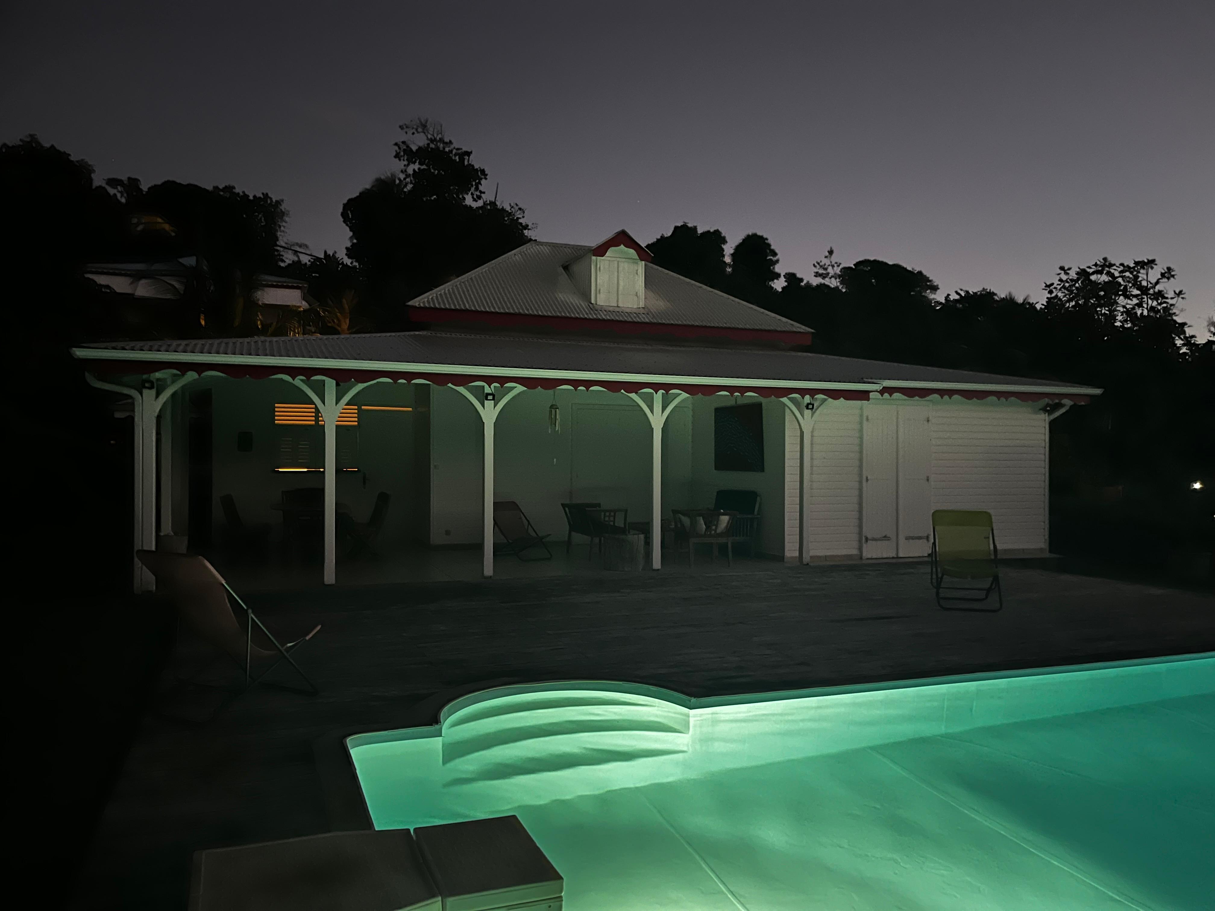 Nous avons séjourné 14 jours dans cette magnifique villa en Guadeloupe et nous en gardons un souvenir exceptionnel.La villa est située au calme, en pleine campagne, avec une vue panoramique splendide sur la forêt depuis la terrasse (encore plus beau en vrai): à la tombée de la nuit, les sons des grenouilles, cigales et oiseaux accompagnent vos soirées, puis au lever du soleil, les coqs rythment le petit-déjeuner. Une immersion authentique et apaisante.La piscine, parfaitement exposée au soleil, était toujours très agréable, quelle que soit l’heure de la journée (environ 27 en journée). Un vrai bonheur.La maison est très bien agencée :Une grande chambre parentale avec vue sur la piscine et sa salle de bain avec WC.Une chambre double avec sa salle d’eau attenante. Un second WC (séparé)Une troisième chambre avec lits superposés. Les trois chambres sont spacieuses, équipées de longs placards coulissants très pratiques, et climatisées.La villa dispose de tout le confort nécessaire : lave-vaisselle, lave-linge, barbecue au charbon, et deux places de parking juste devant la maison.Le propriétaire, Jean-François, qui réside discrètement dans une dépendance côté parking, a tout fait pour rendre notre séjour agréable. Disponible, gentil, arrangeant et très respectueux de notre tranquillité. Nous avons opté pour un traiteur midis ou soirs, il avait un jeu de clés et livrait durant notre absence ("passion et saveurs gourmandes"- STE ANNE, TOP! Entréeplat dessert..petits-déj..)
