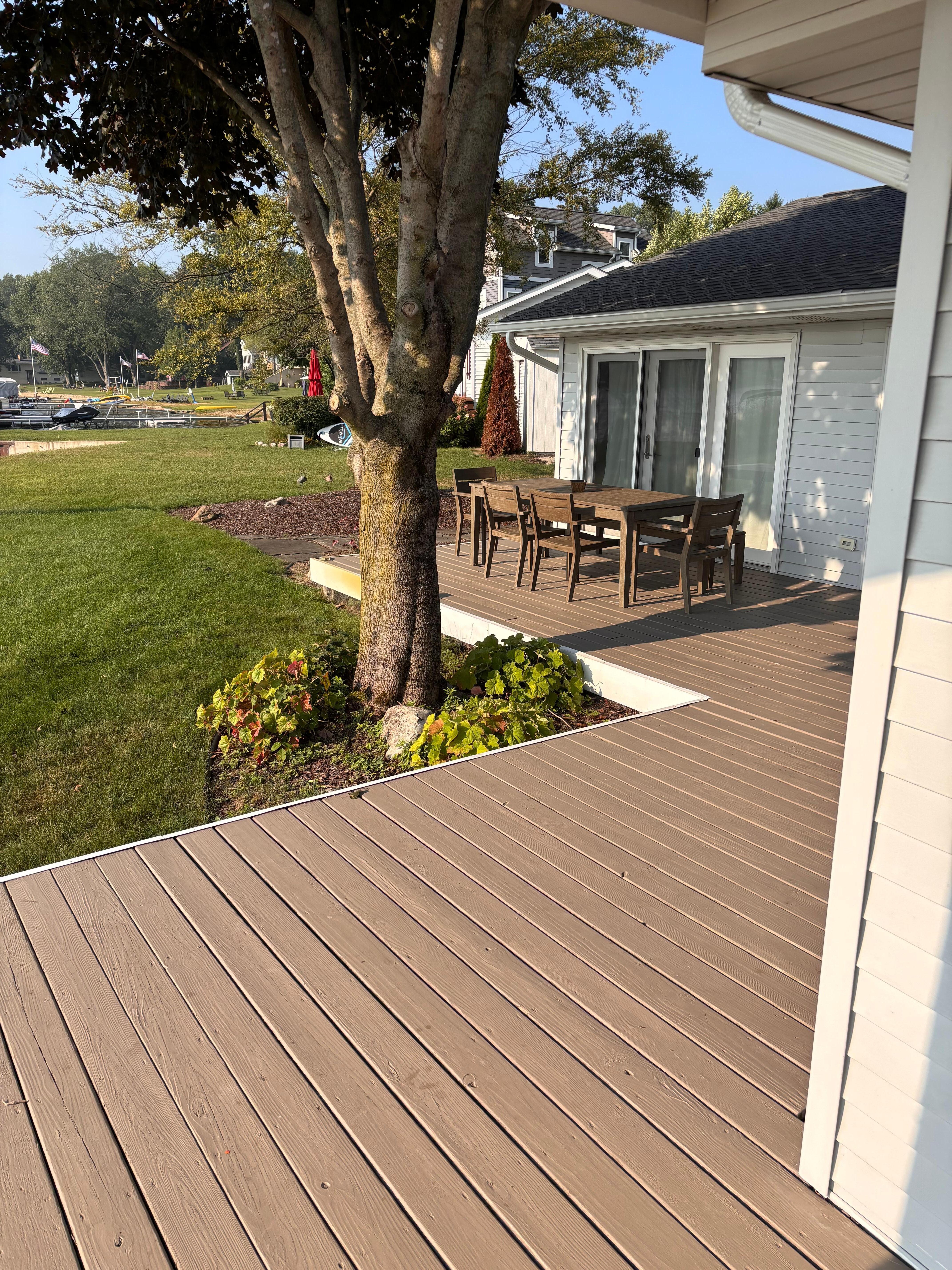 OUTDOOR LIVING: Private deck w/ 2 dining tables, tandem kayak