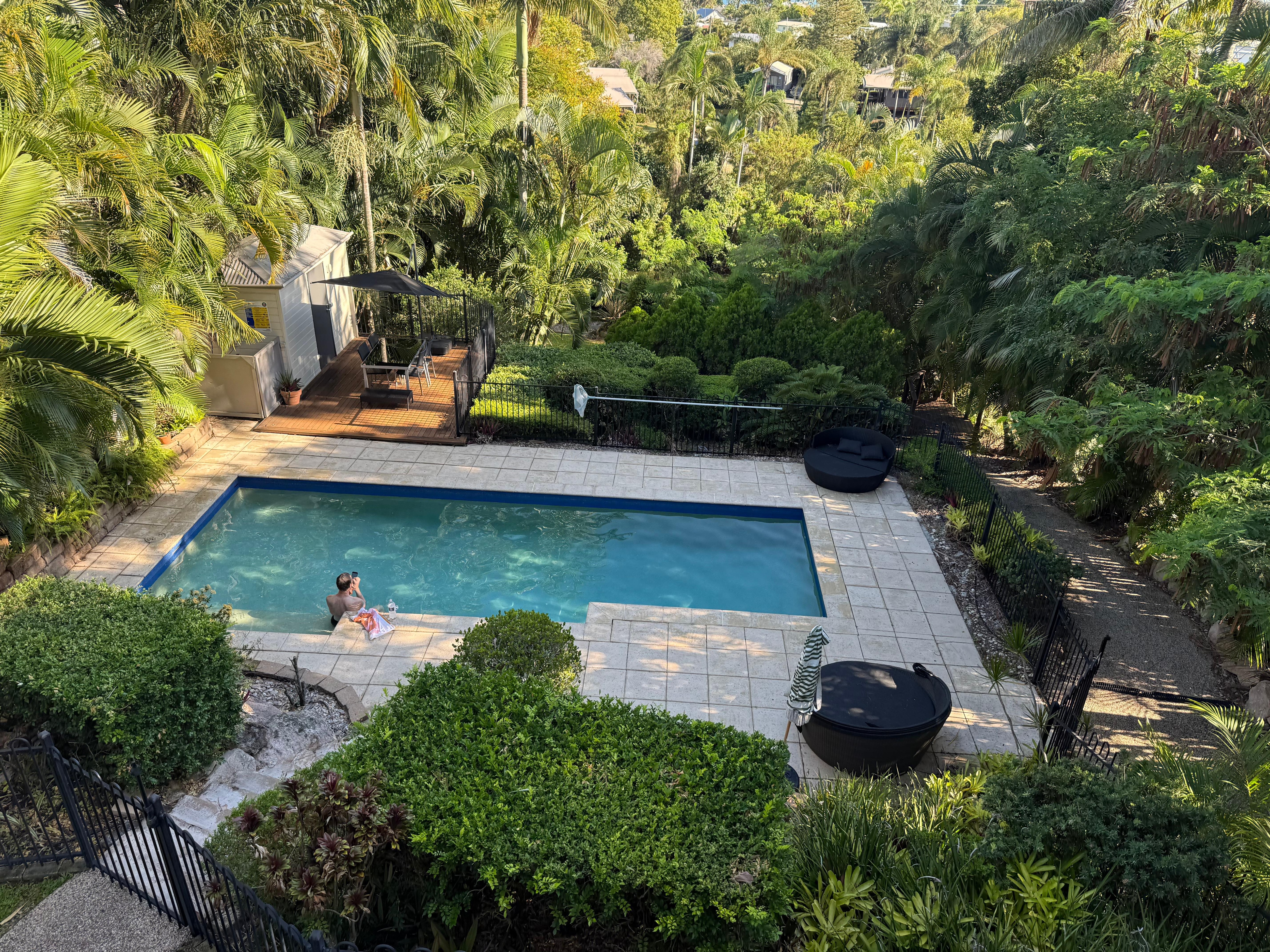 Step into our tranquil oasis, where you'll find yourself surrounded by tropical greenery and the soothing sounds of nature. The centerpiece of our property is a magnificent 10-meter saltwater pool, inviting you to take a refreshing dip or simply lounge poolside and soak up the sun.