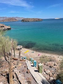 The owner is quick to respond to communication and provided a wealth of information regarding activities in the area. It’s nice to have kayaks and other water toys to use. The private beach was a definite plus and the sunrises were unbelievable. The studio was satisfactory with sufficient space for a couple. There is no separate bedroom and a curtain separated the bathroom from the living space. If you like a hard mattress, you’ll sleep well. What was not disclosed honestly was the hot tub situation. When I filtered properties, I looked only at properties with hot tubs. Because he selected hot tub as an amenity, his property showed up as an option. The property DOES NOT IN FACT, HAVE A HOT TUB. What is available is a tide-reliant natural hot spring at the beach. You have to time your soaking time around high tide or there is no water coming from the spring to mix with the cooler sea water. If you’re lucky, high tide occurs once (maybe twice) during normal waking hours. Many high tides occur in the middle of the night. If you are willing to plan your day/sleep around high tide, and you time it just right, you can enjoy a soak. I find it unfair to reveal the hot spring in the description yet indicate there is a hot tub amenity. Those are definitely two different things. In a four night stay, I soaked up to my calves in warm water, because I never figured it out. There are 77 steps from the beach to the Casita and 86 steps from your parking spot to the Casita. BUYER BEWARE!