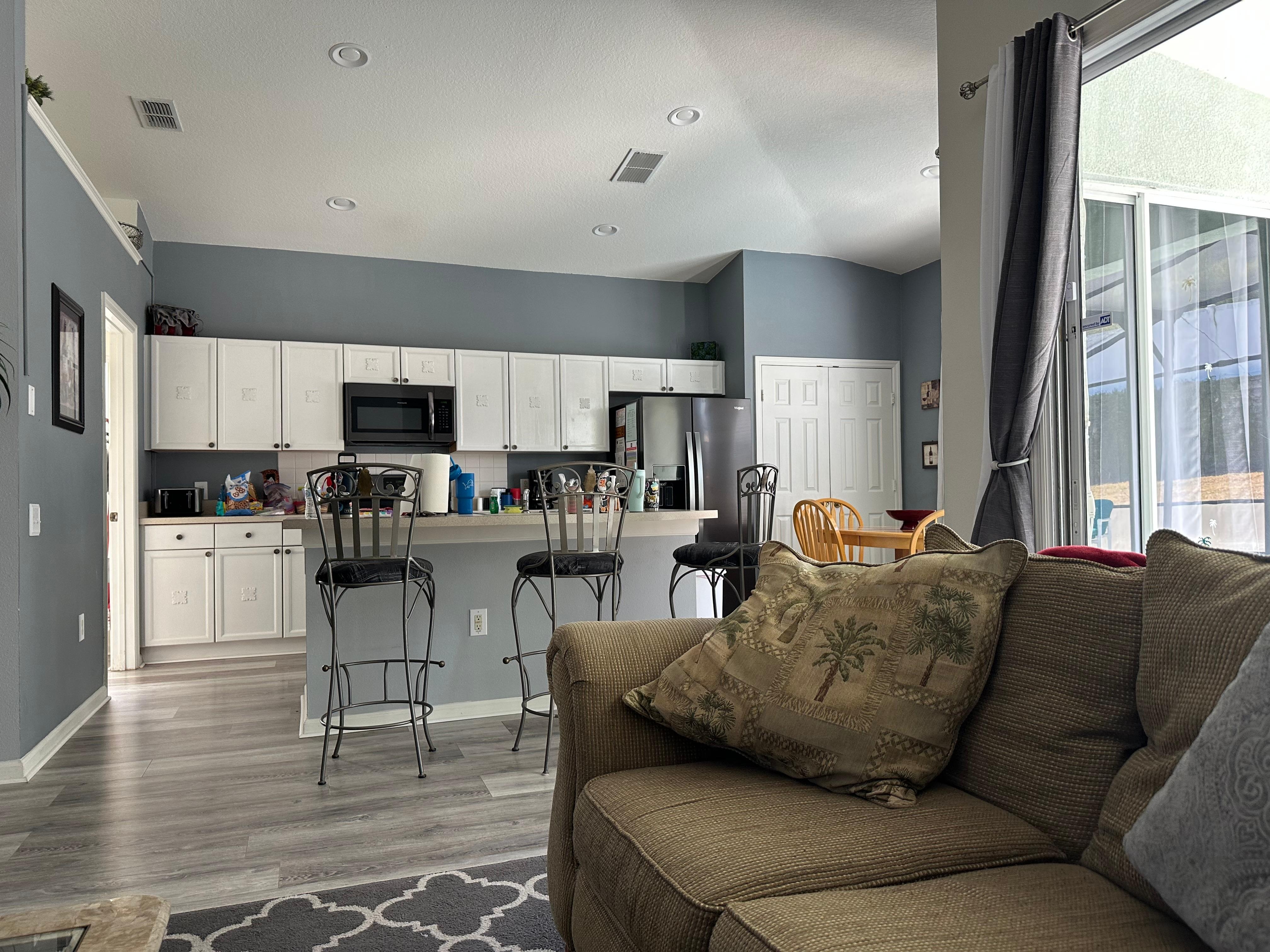 Great host and great home. Very clean and convenient to Disney parks. Home had four ample bedrooms and tv’s in each. A nice kitchen, with eat-in area. Pool and spa were nice as was the pool table/foosball/air hockey game room. Clean, quiet, and very safe, neighborhood.
