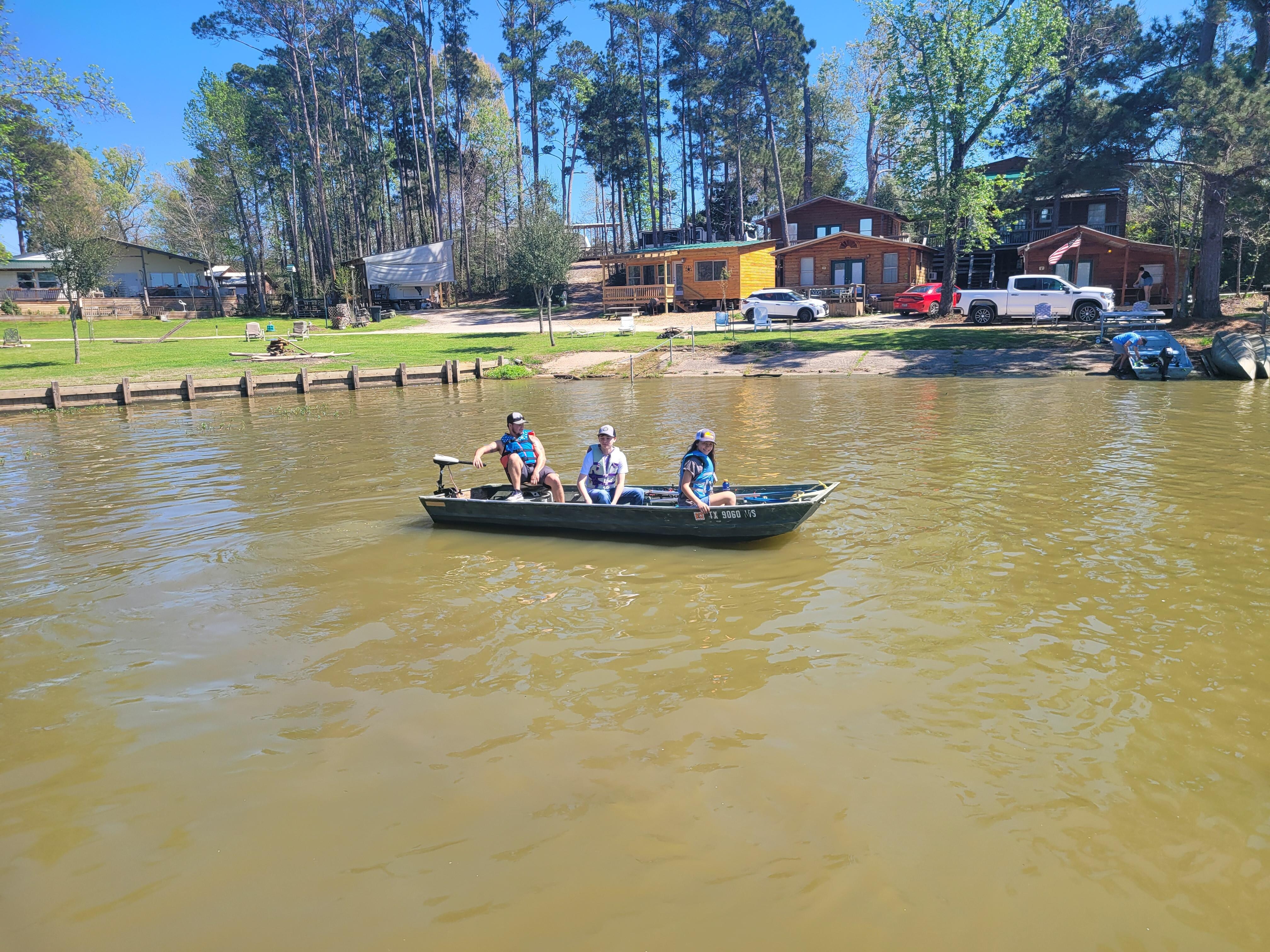 > Jon boat w/trolling motor, 2 batteries, paddle and life vests at $50 for 4 hours, $10 (for each additional hour), or all day $75.