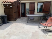 15 m2 terrace with garden furniture, electric plancha, blind and a bicycle available with its anti-theft device.