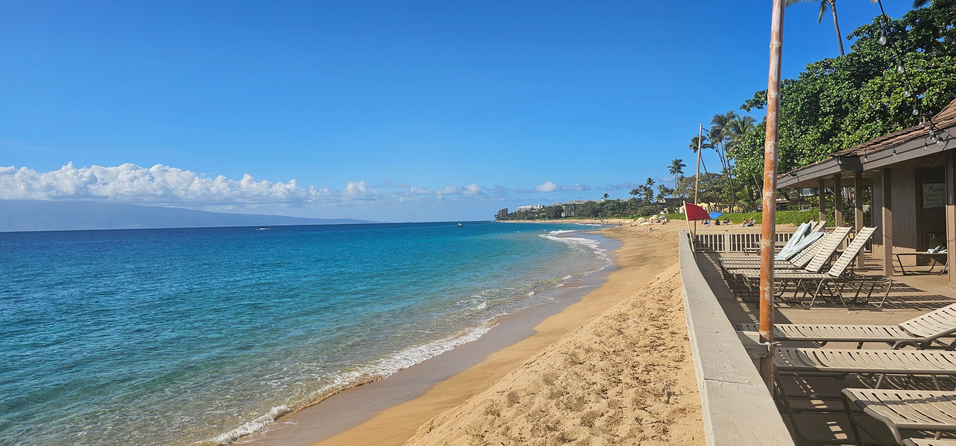 • Maui Eldorado exclusive Cabana with full kitchen, dining area, bathrooms, showers, towel service, and lounge chairs