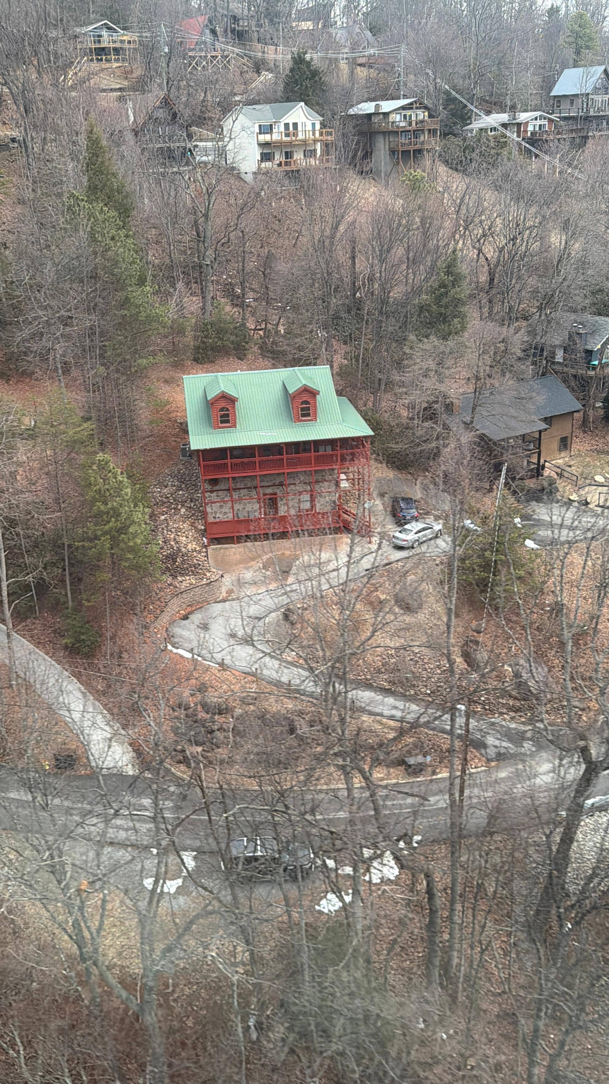 We’ve been to this area tons of times and stayed at a lot of cabins, and this one is hands down the best. The mountain views from the deck are beautiful. Even though there are neighbors nearby, it still feels really private—almost like you have the mountain to yourself—since the cabin sticks out from the slope a bit more than the others. The inside is very nice, and the mural is a really cool touch. The Christmas decorations were also beautiful and made the place feel extra cozy. The cabin is at a lower elevation, and the road does get a bit steeper as you get closer, but it wasn’t an issue for us at all—even during a snowstorm. The host sent very detailed road instructions ahead of time, which helped us feel prepared and made getting there easy. We would definitely stay here again.